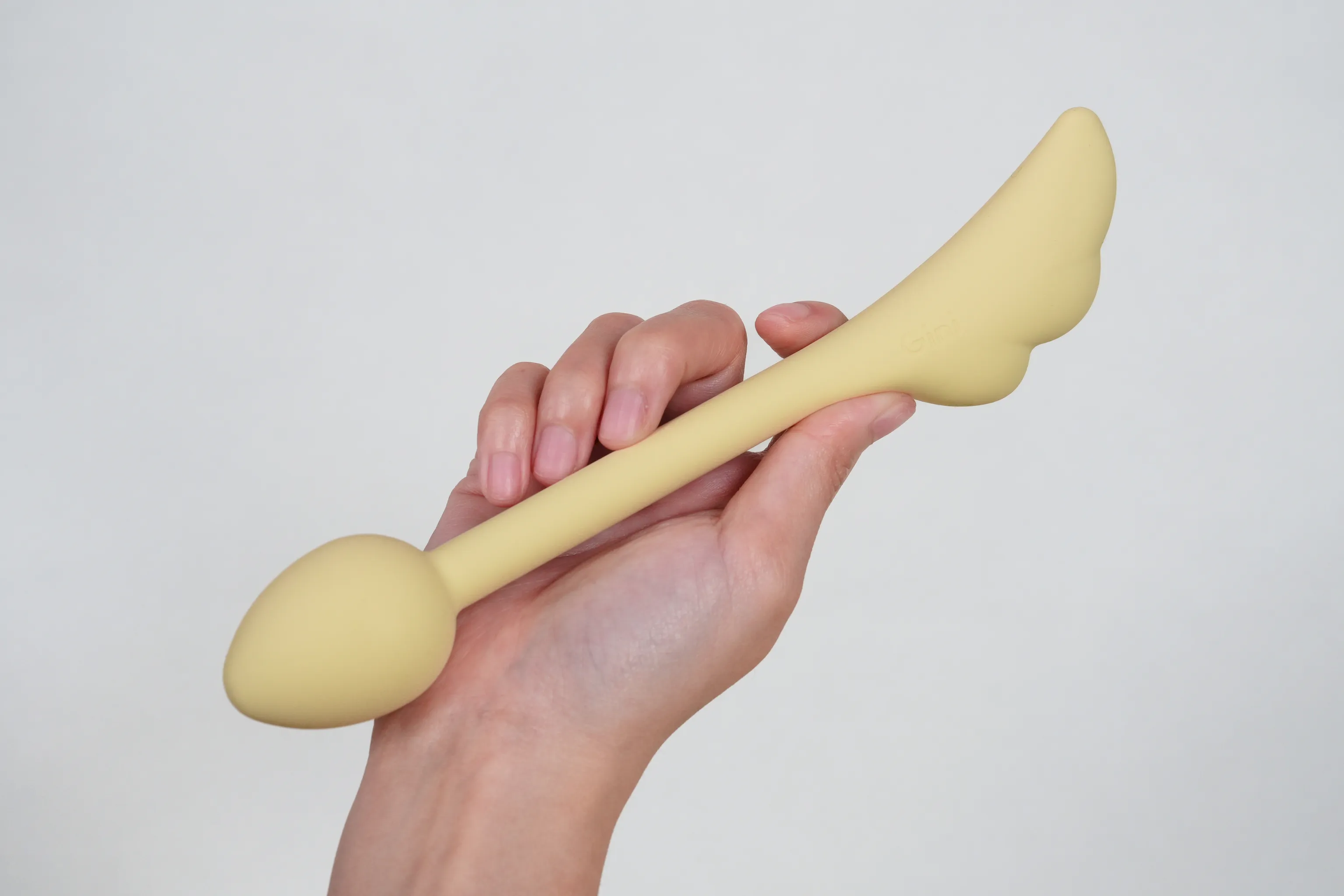 ▼由台灣品牌「Gini」推出的「精靈之箭」第二代,淡雅的寶寶色系搭配軟萌外型,第一眼就讓人留下好印象,整體設計就像是一款自帶把手的跳蛋,不過它無法遙控也無法穿戴。全機採用頂級雲膠一體成形包覆,觸感相當柔軟細緻、滑順親膚。