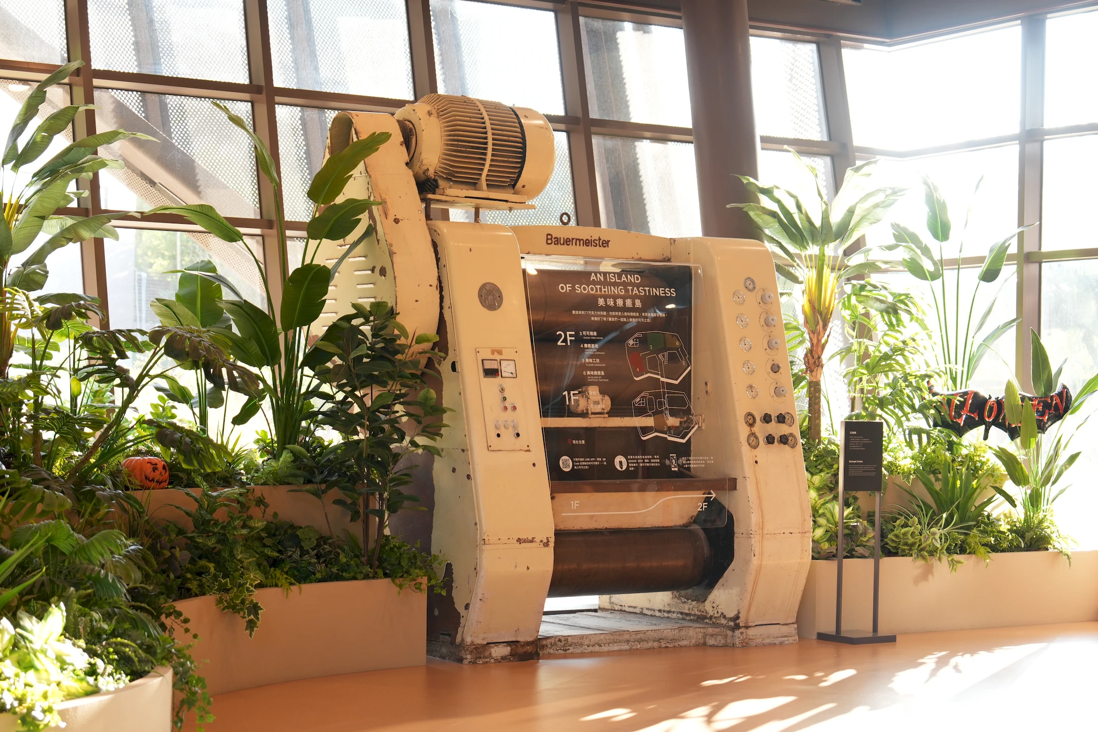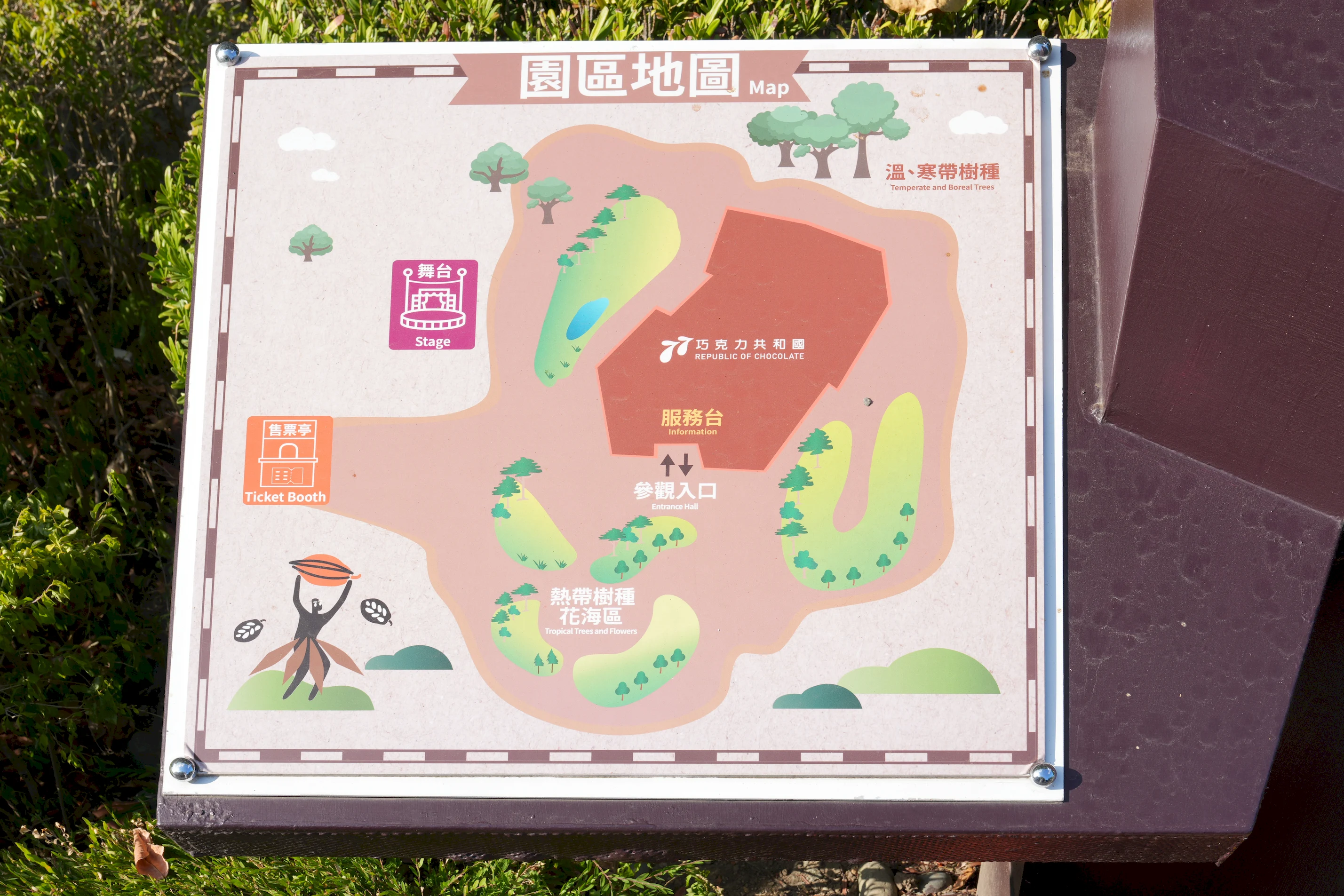 ▼再往前走,就會看到園方特別將園區地圖印在製作巧克力的「五滾輪機」上,讓遊客可以透過五感體驗深入了解巧克力的製作過程,同時也能順便規劃參觀動線,方便探索其他展區。