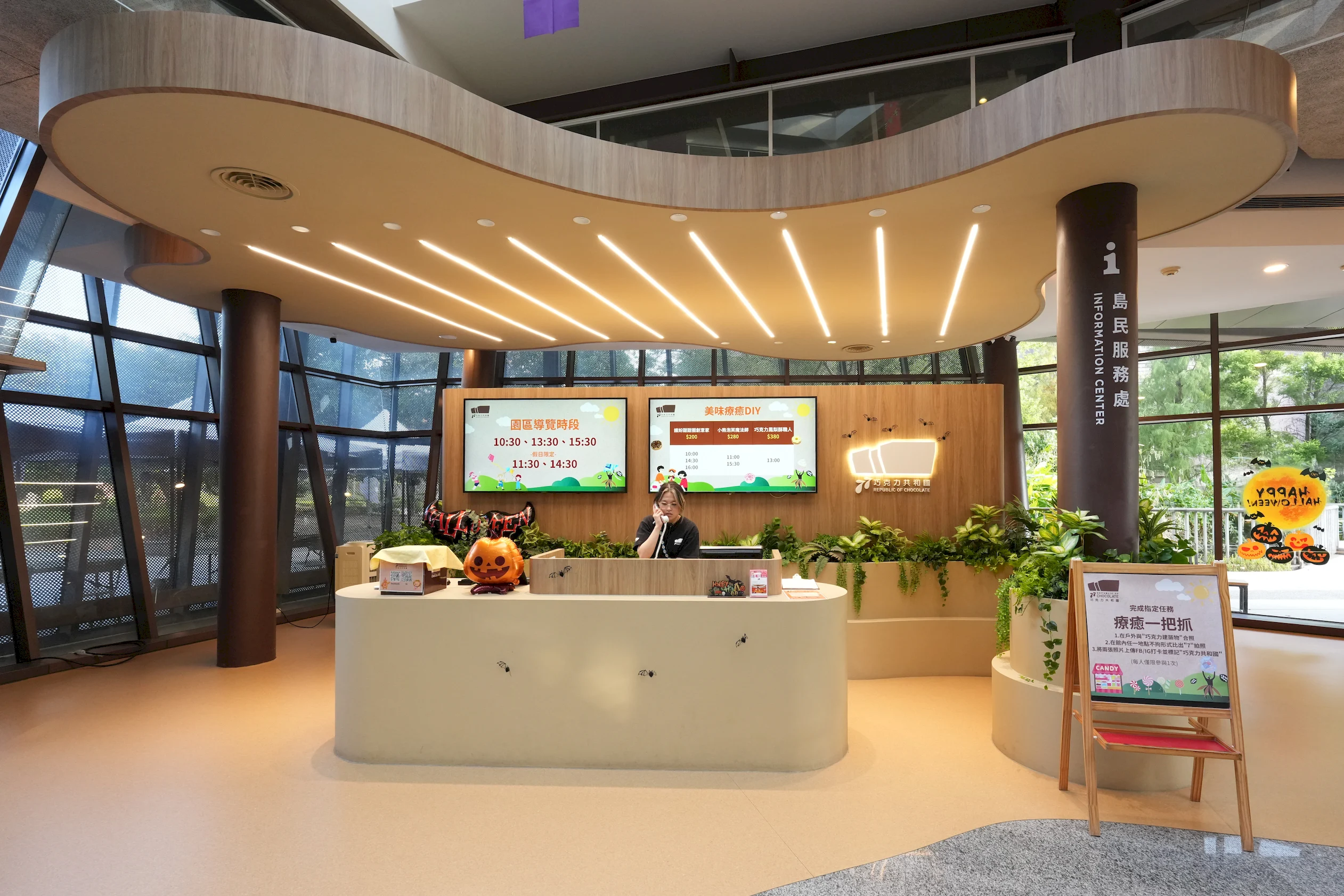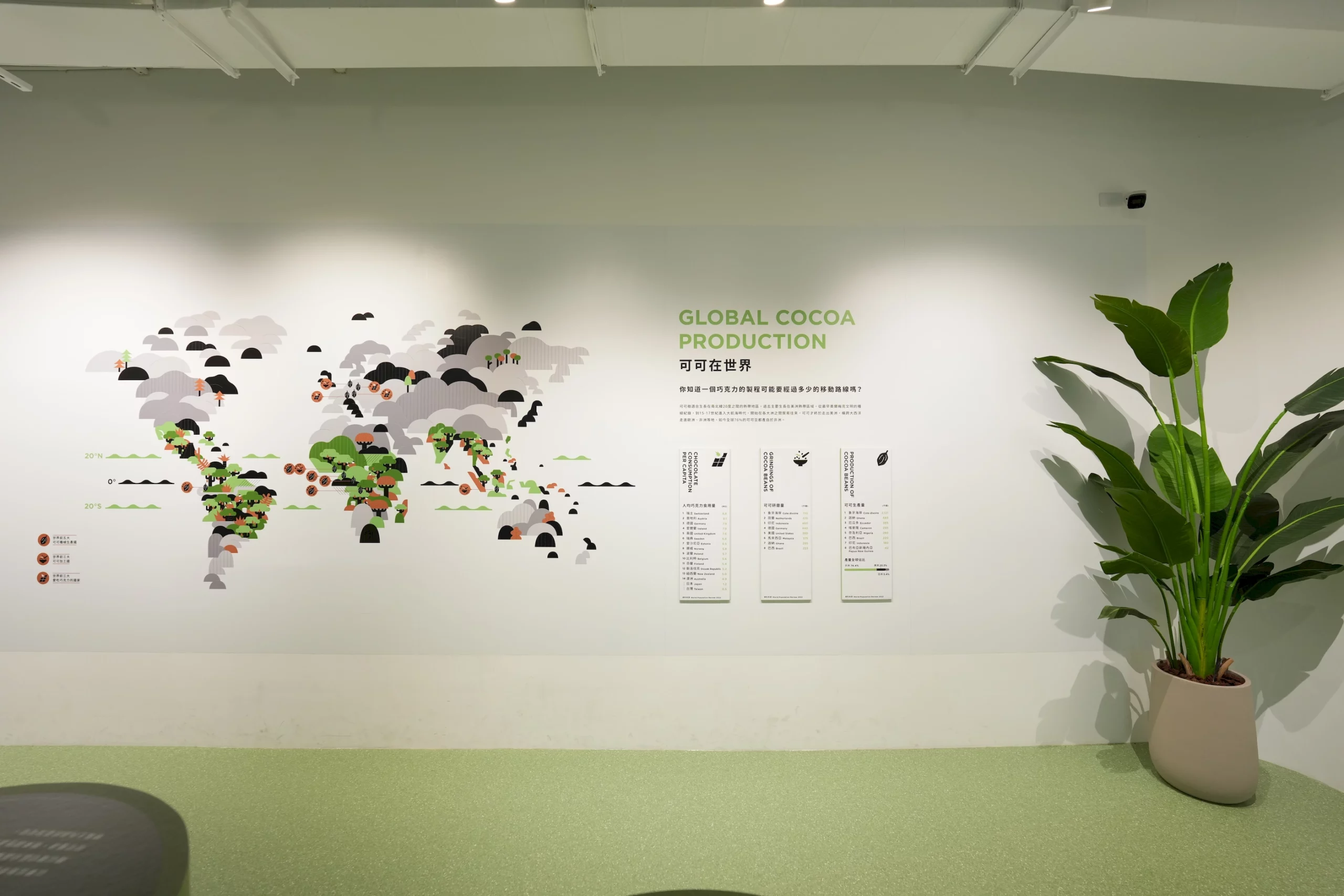 ▼接著可以先到一樓左側的服務台,這裡提供免費導覽活動、DIY課程報名與參觀動線等相關諮詢服務,此外,服務人員也會邀請遊客加入官方LINE,參加「種下專屬可可樹」的小遊戲,遊戲的玩法是依照參觀動線,前往各個展區輸入相應代碼,依序完成任務後就能在遊戲中獲得一棵屬於自己的可可樹。