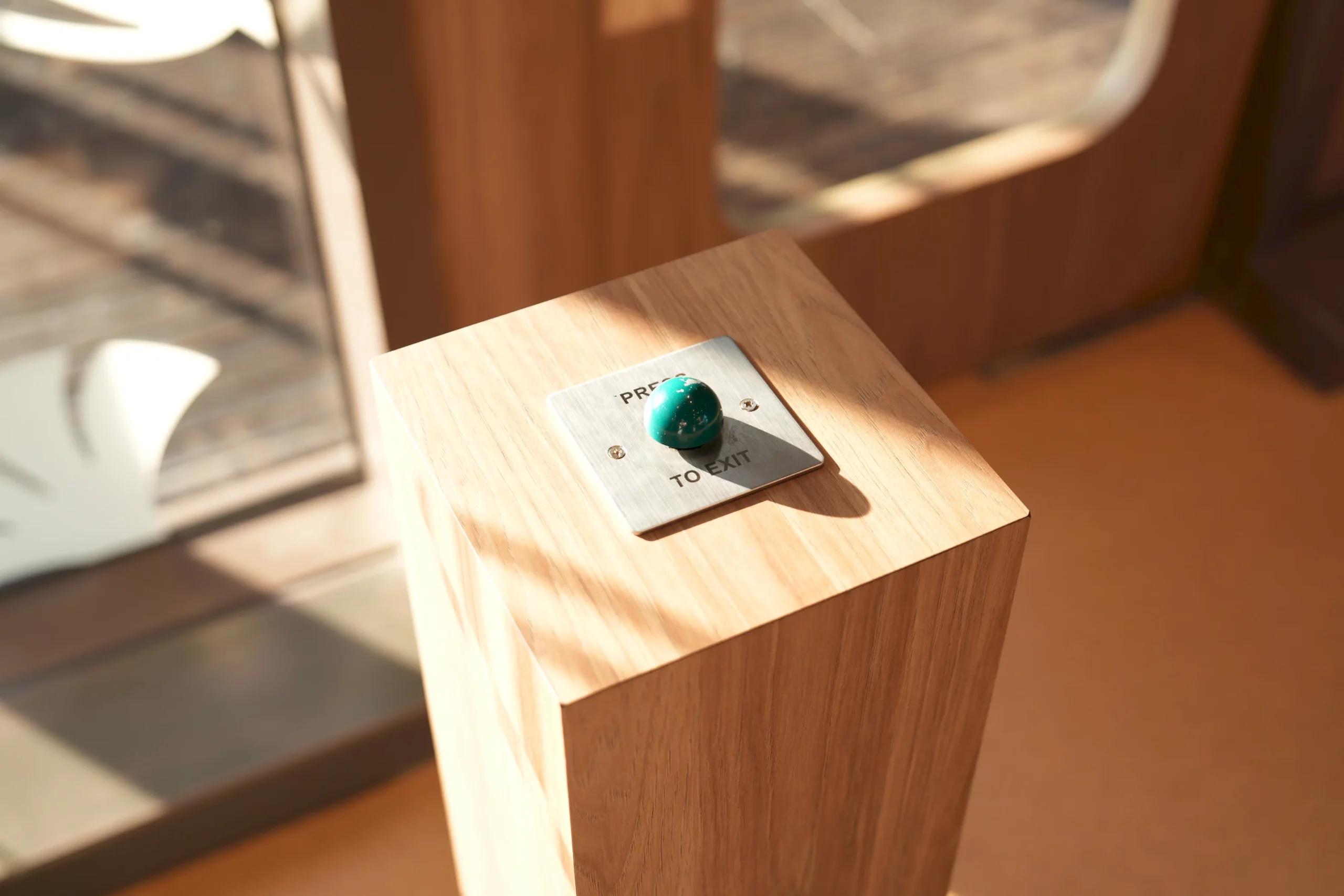 ▼不過,我們原本以為只要按下登島口旁的按鈕,門就會自動開啟,結果按了幾次都沒有反應,讓人感到有些疑惑,後來才發現其實是需要遊客自行推門進入。