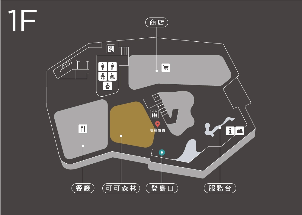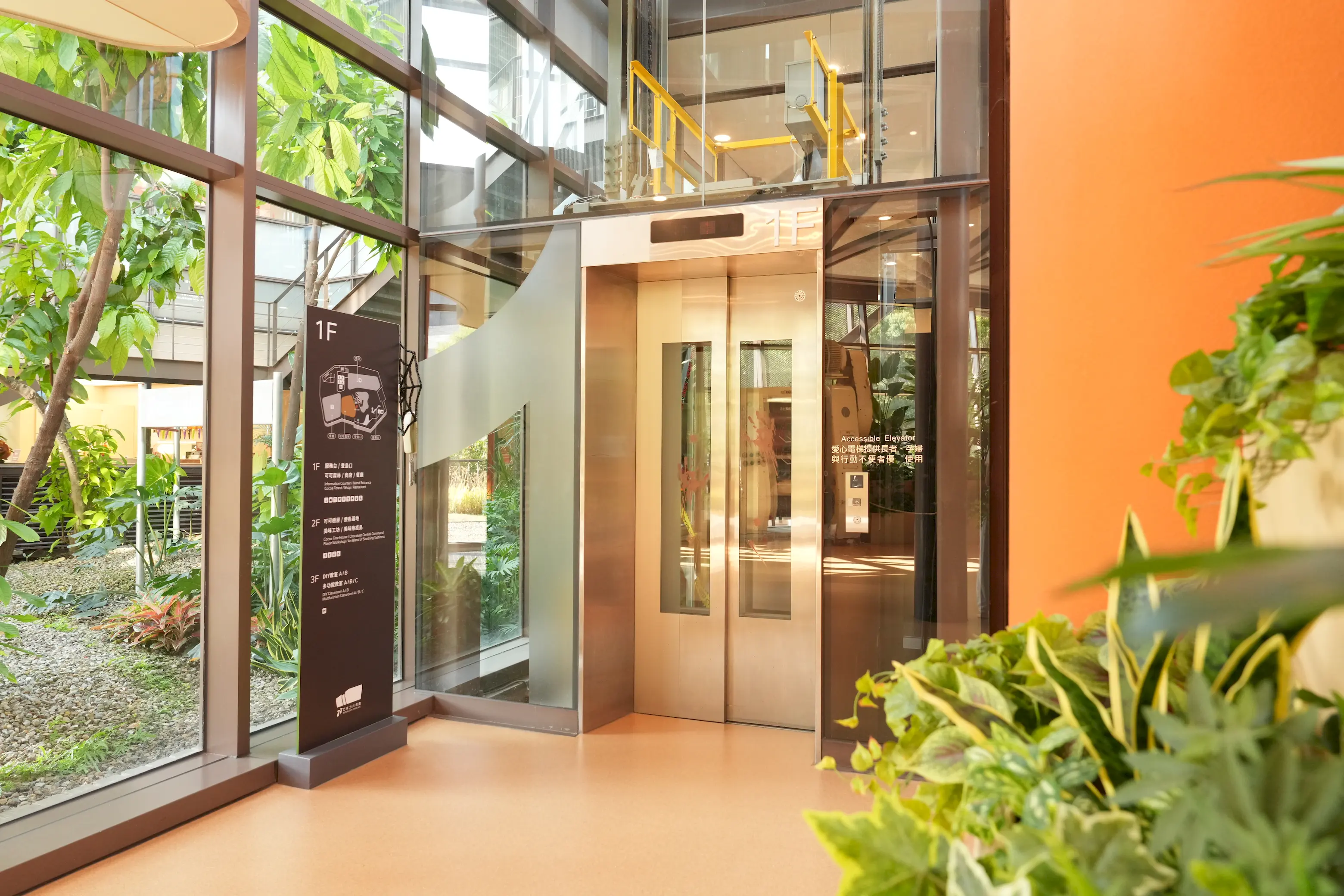 ▼另外,因為「可可森林」僅提供樓梯通行,如果遊客行動不便,或是攜帶小孩、長者,可以搭乘登島口旁的電梯,直接上到二樓參觀。