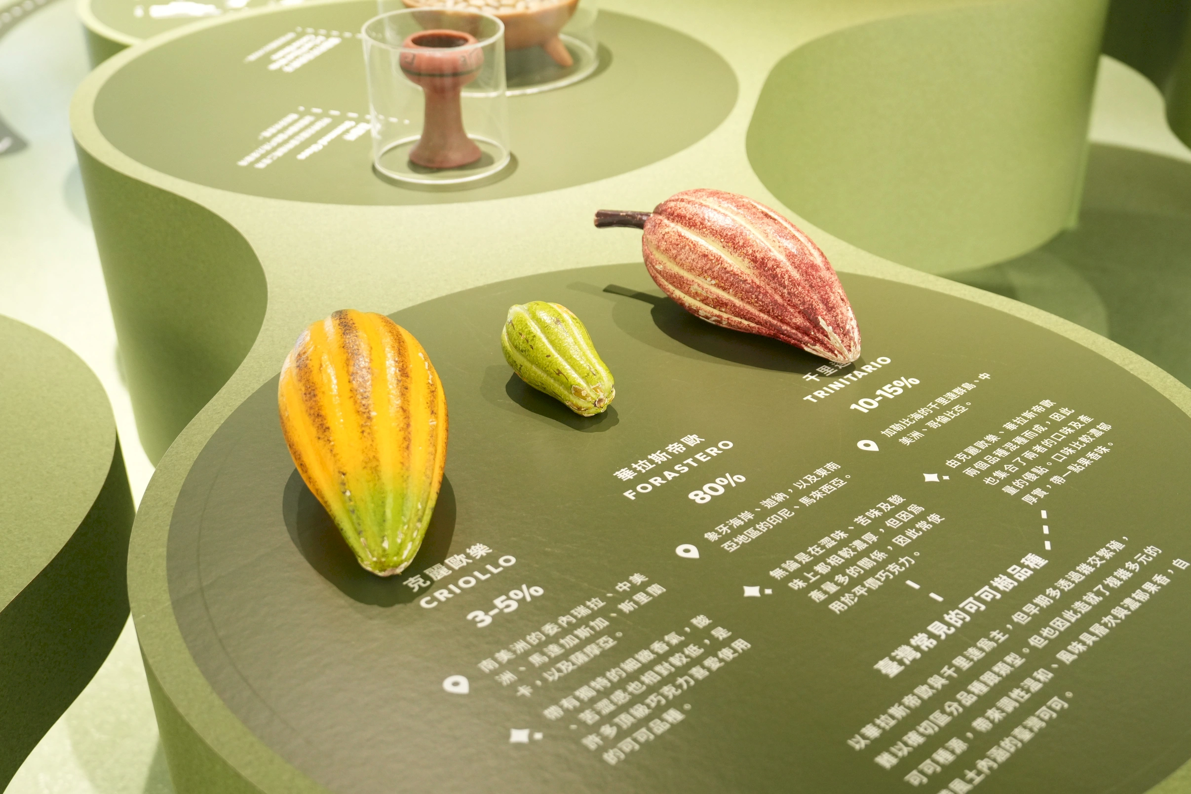 ▼「可可樹屋」主要展示世界各地可可的生長環境、特徵及相關歷史,其中個人印象最深刻的是三種不同的可可果實,它們的外觀各不相同,分布在不同的地區,且各自能製作出不同風味的巧克力,十分特別。