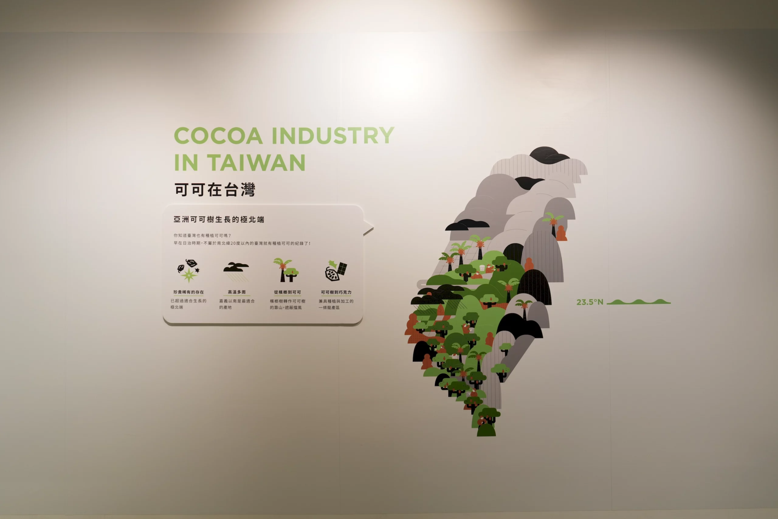 ▼看完世界各國的可可樹分布後,接著會看到臺灣可可樹的相關介紹,這裡以簡單的圖文呈現,讓遊客能大致了解可可樹在臺灣的分布與歷史;展區旁也設有遊戲代碼,完成養分採集任務後,就可以繼續前往下個展區參觀。