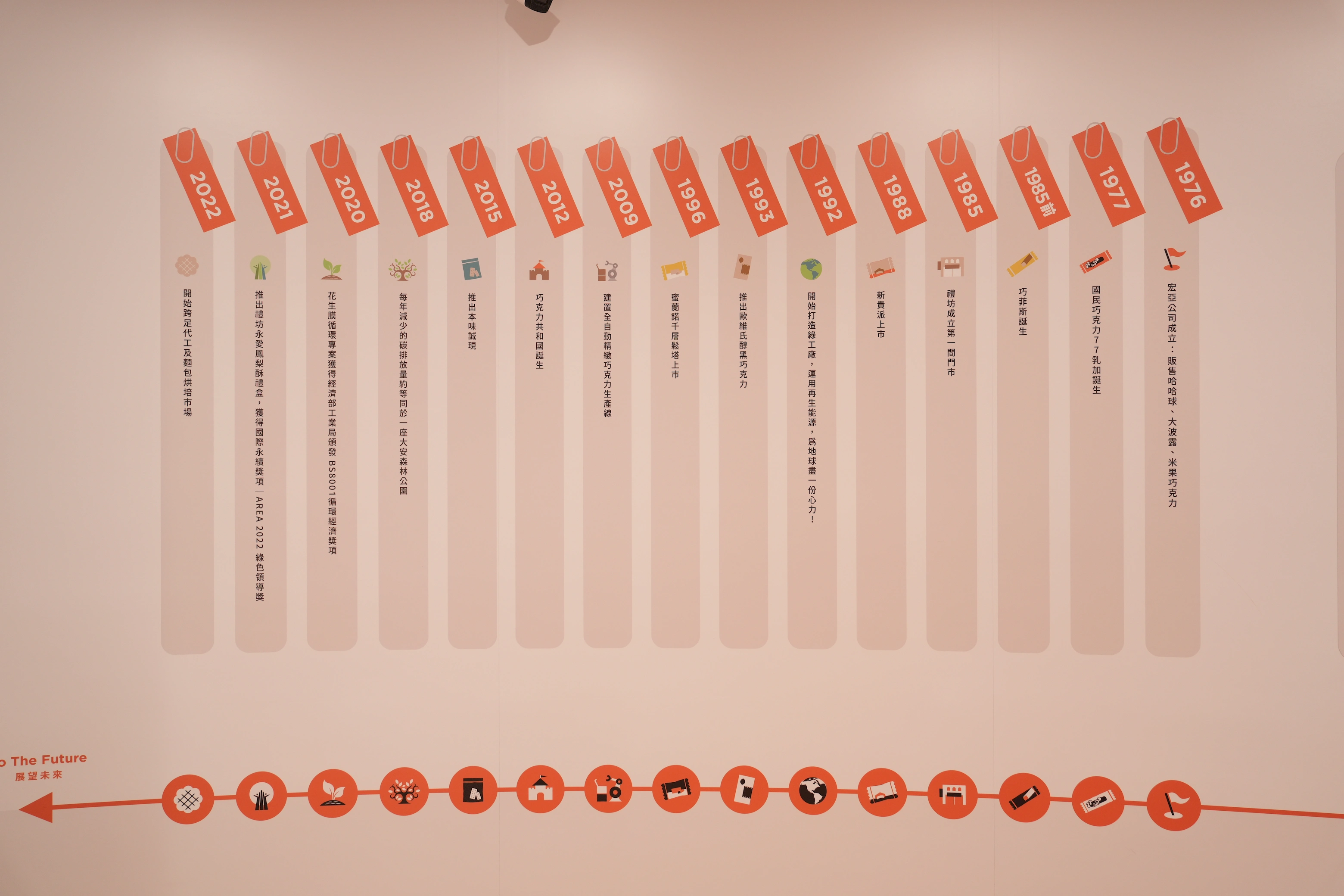 ▼接著,會看到「宏亞食品」的品牌發展歷程展區,看了展區的介紹才知道,原來「宏亞食品」旗下擁有這麼多品牌,包含77乳加、新貴派、歐維氏、巧菲斯、蜜蘭諾、本味誠現與禮坊,讓人對這間公司有了更深的認識。