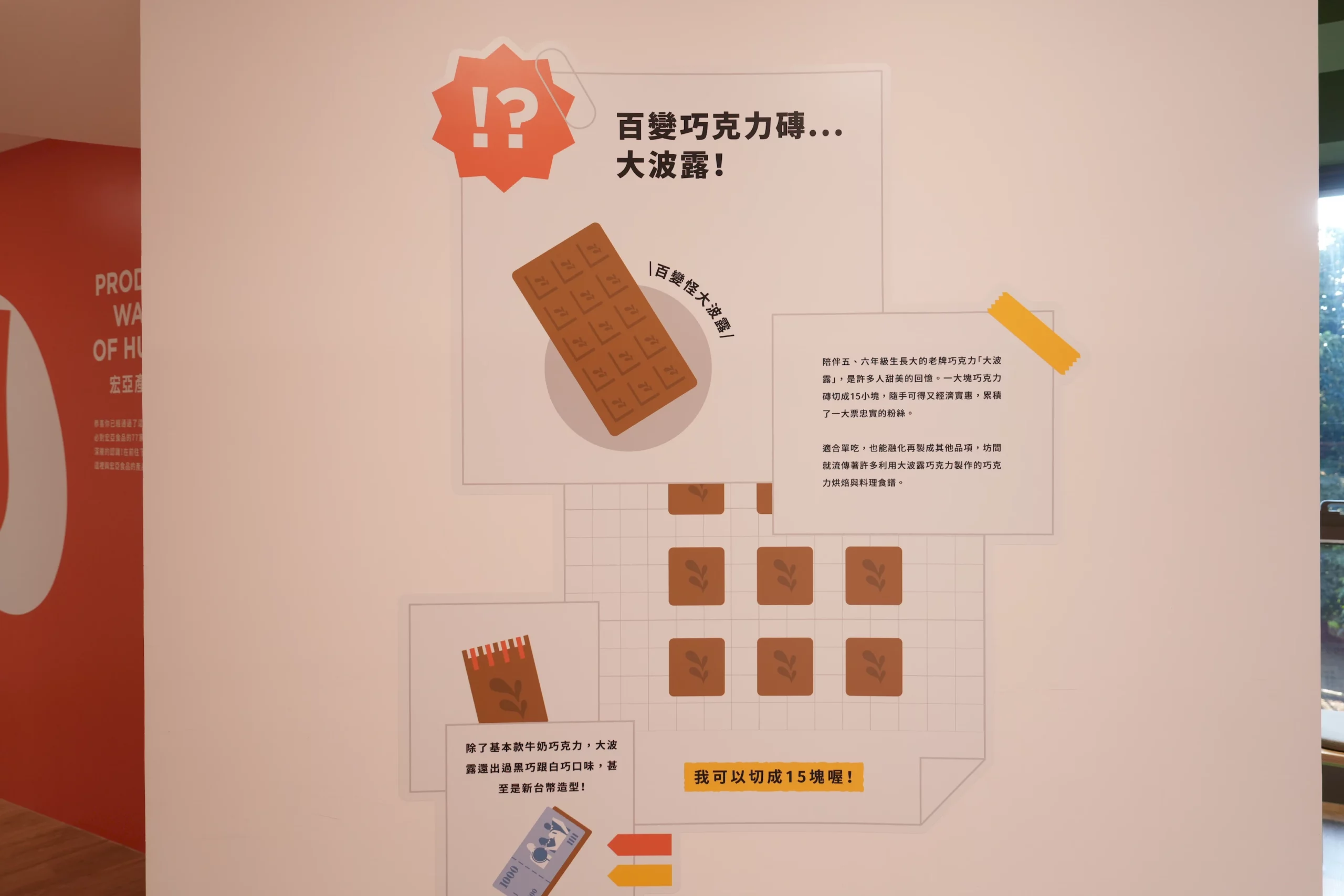 ▼最後是「宏亞食品」歷年來的產品展示牆,遊客不僅能一次欣賞到所有經典巧克力的包裝,也能了解到品牌一路走來的發展與故事。