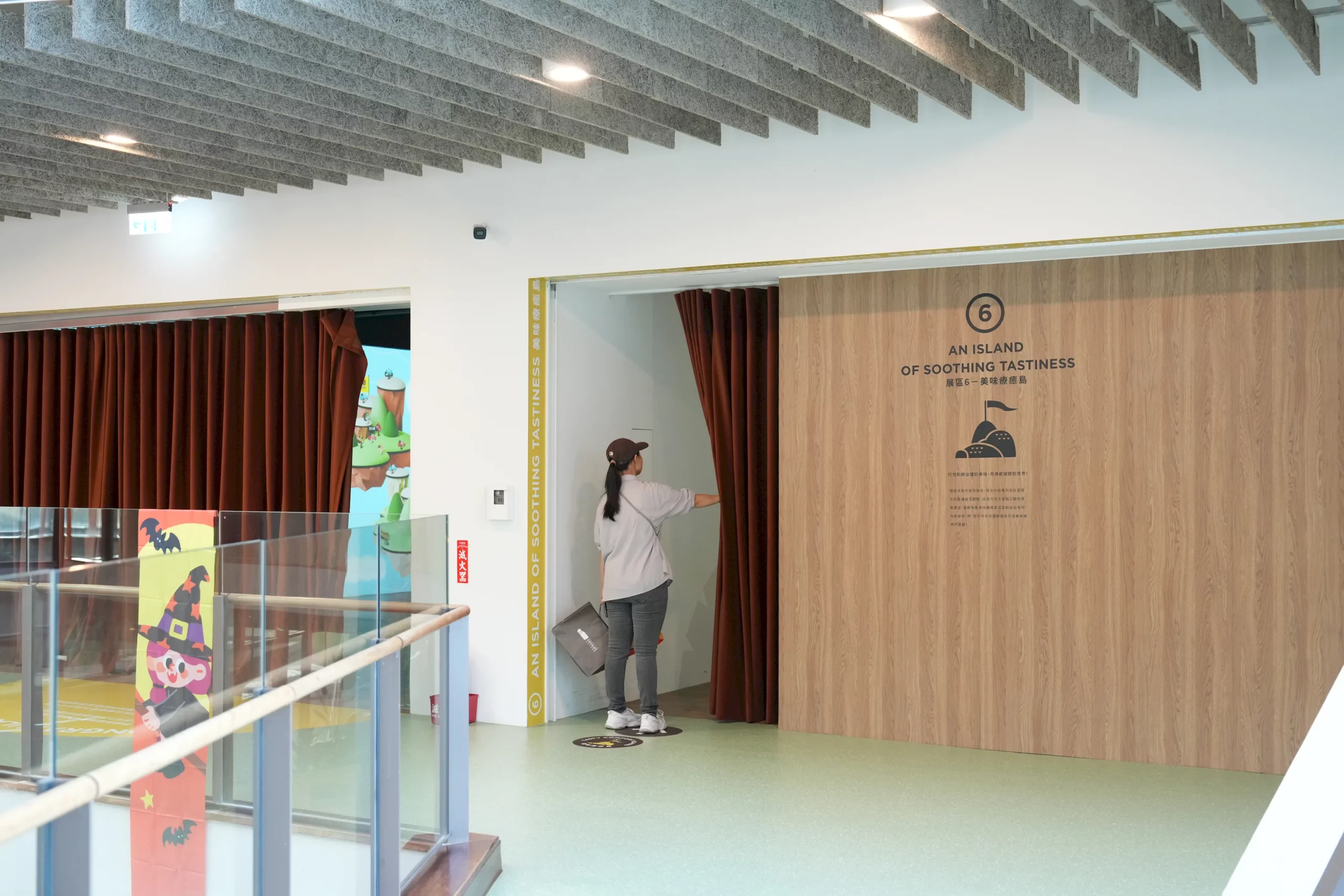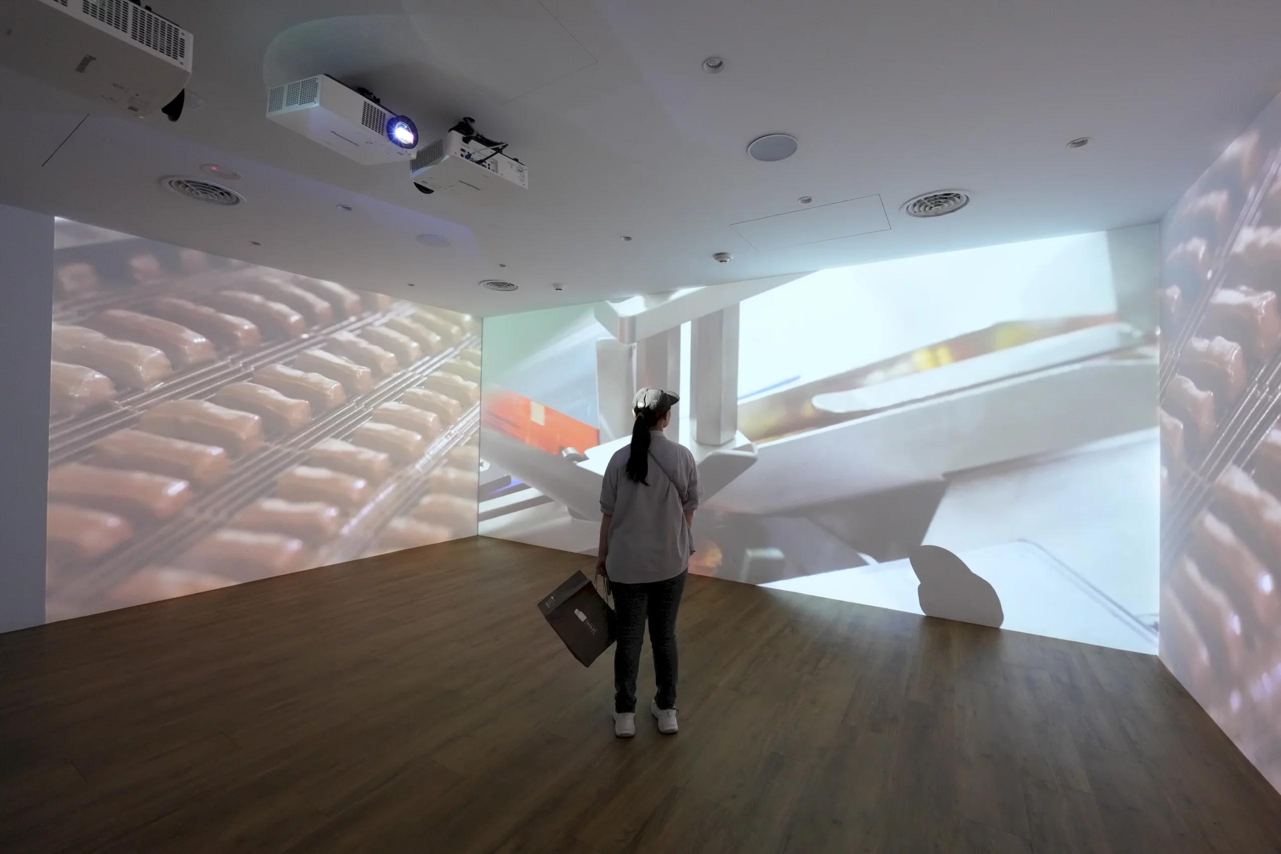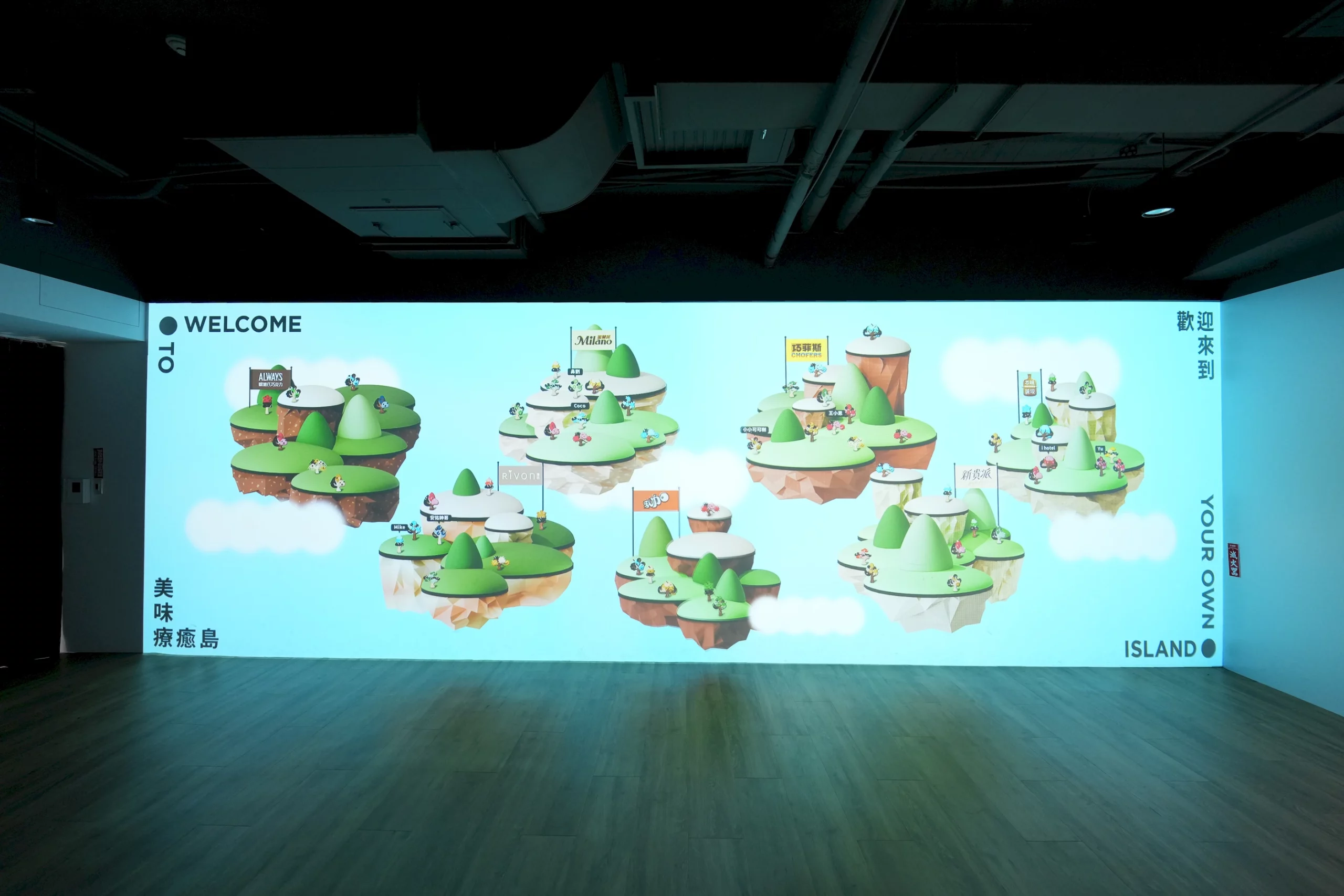 ▼二樓展區的盡頭是「美味療癒島」,在這裡遊客需要先拉開布幕才能進入展區,進去後便會看到歷年77乳加等經典廣告的輪播畫面,以及這些產品在工廠的製作過程。