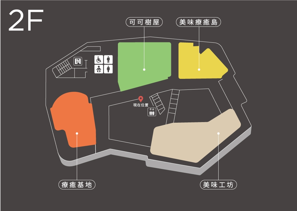 ▼以下也附上「77巧克力共和國」官網上提供的室內導覽地圖,方便大家更清楚各個展區的位置: