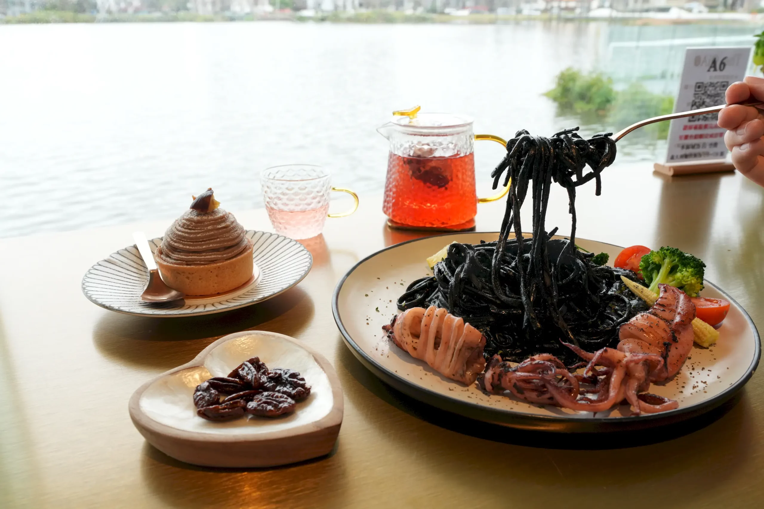 墨魚義大利麵有明顯腥味,花椰菜和玉米筍也不夠熟;栗子蒙布朗塔奶油比例偏高,容易感到甜膩;反倒是玫瑰蜜桃花果茶酸甜清爽,推薦給喜歡花果茶的朋友們!