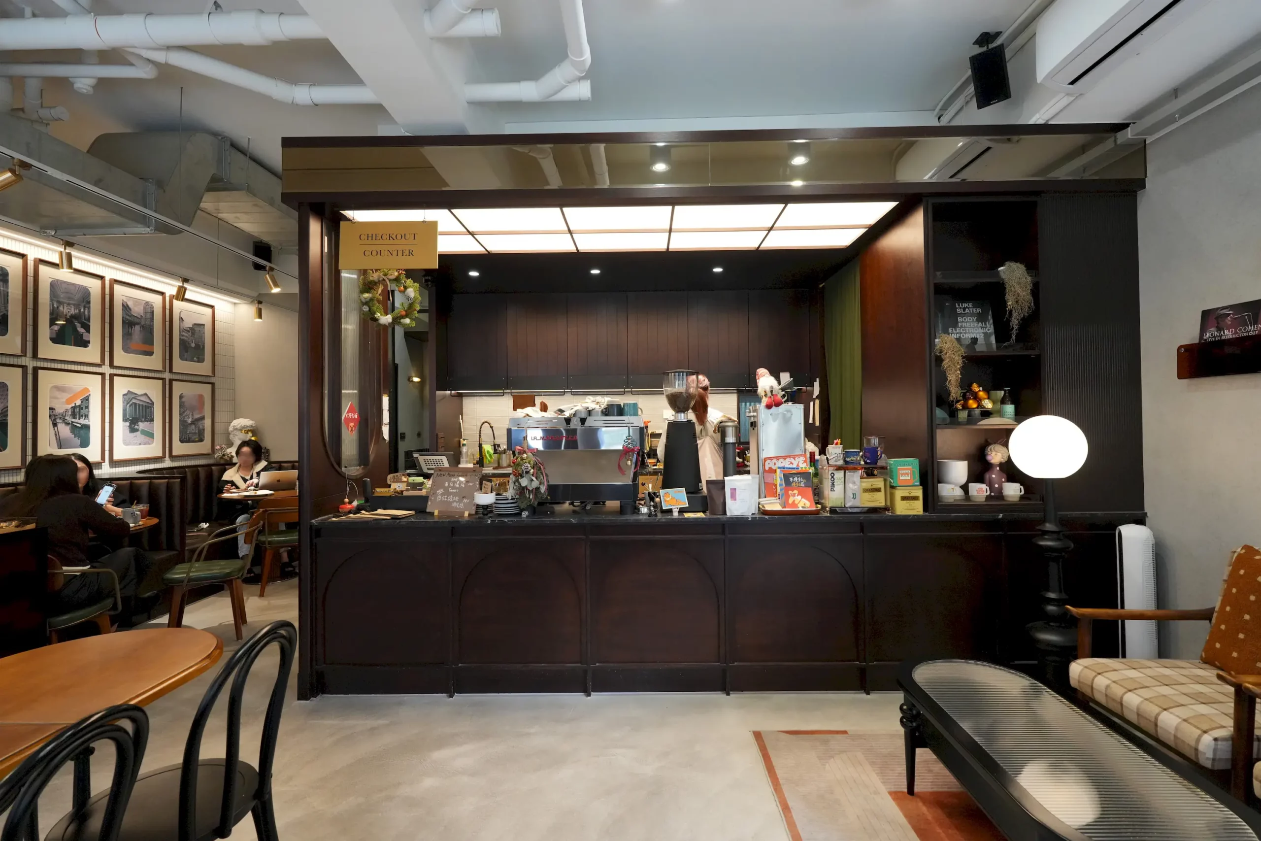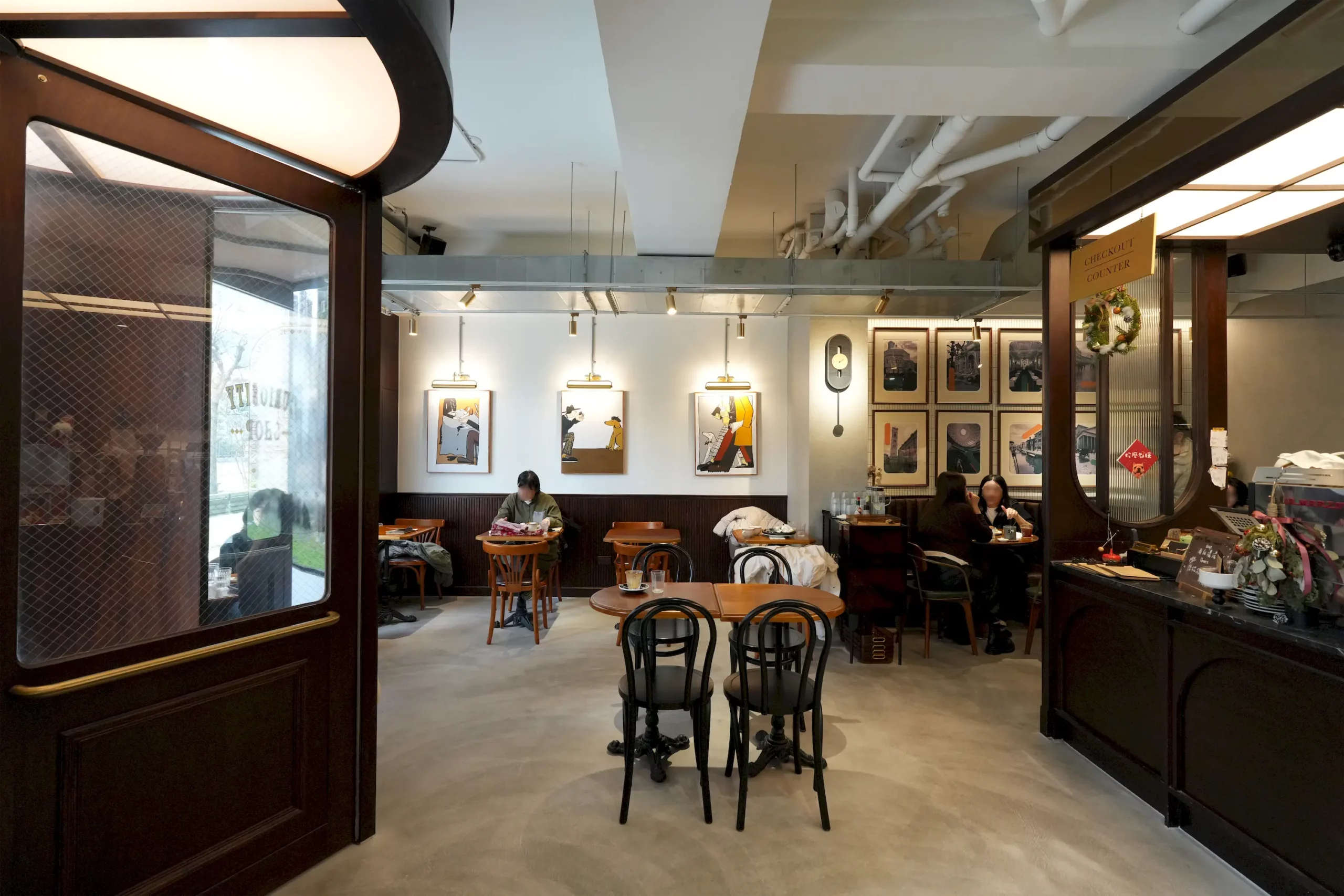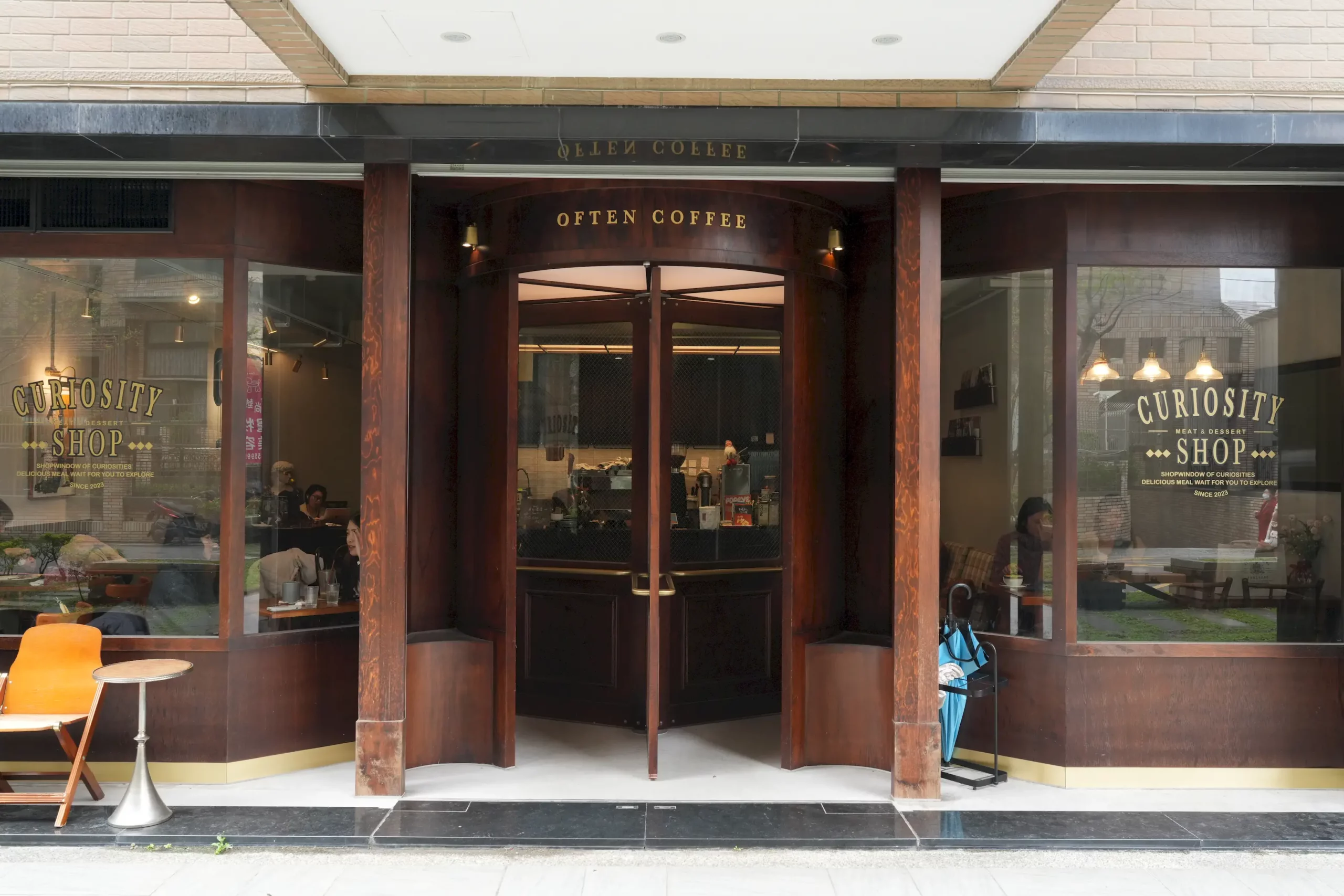 「時常咖啡」是一間擁有復古旋轉門的英式咖啡廳,店內暖黃燈光襯托著復古木質裝潢,牆上掛著許多幽默的壁畫,讓人不自覺沉浸在這家店的氛圍中。