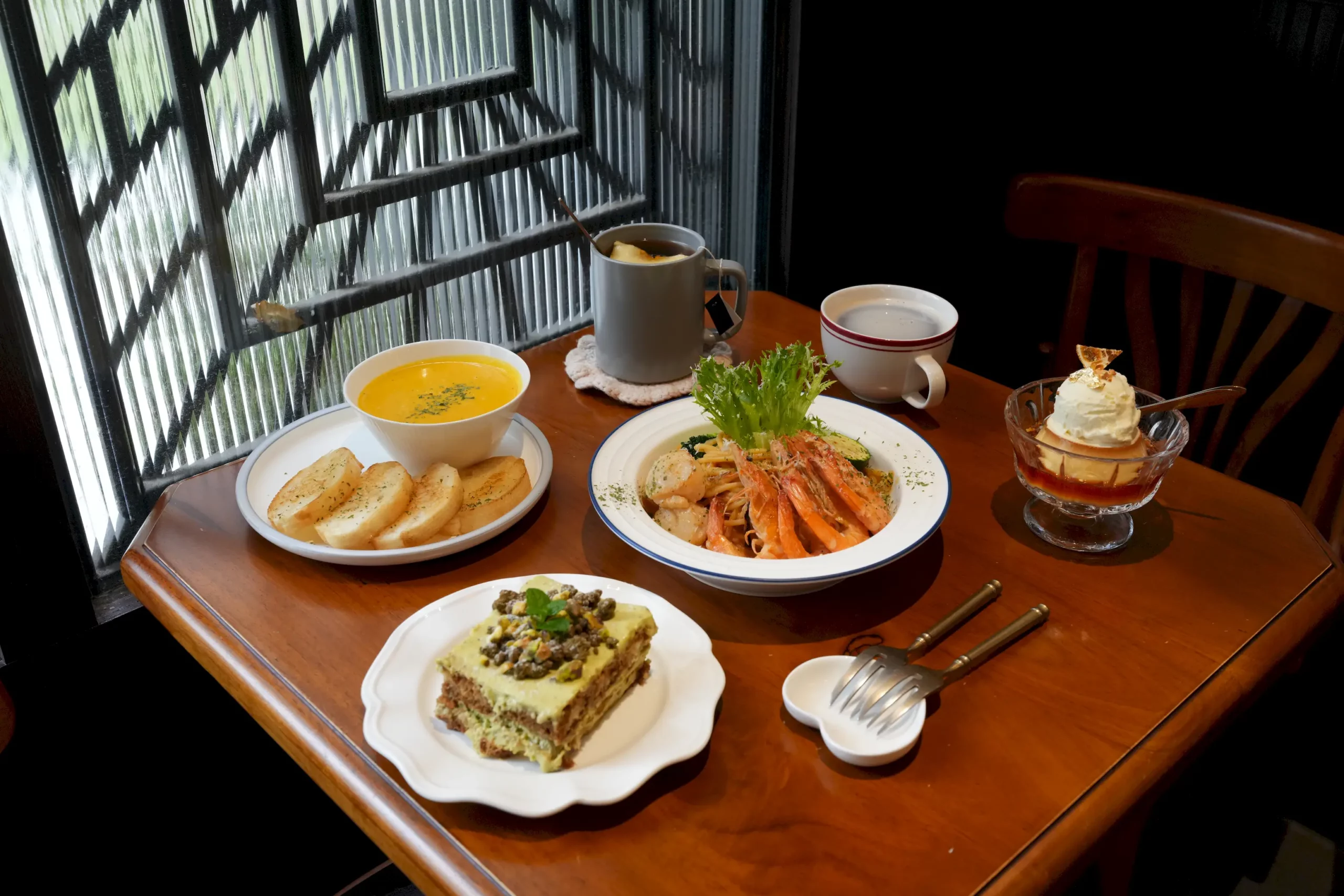售賣的餐點品項也很豐富,有青醬蛤蜊、墨魚等各種風味義大利麵,甜點有塔類和千層蛋糕可以選擇,飲品除了醇萃咖啡和嚴選精品好茶,無咖啡因的選項也不少,對於不喝咖啡因飲品的朋友們來說非常友善。而且這也是一間親子和寵物友善咖啡廳,無論是帶著小孩或是寵物同行都非常適合。