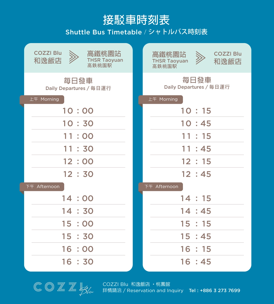 ▼若搭乘大眾交通運輸,則可以搭高鐵至「桃園高鐵站」,從「5號出口」出站後,前往「客運轉運站10號月台」,出示餐飲預約證明,即可搭乘專車前往飯店,抵達後,搭電梯上到2樓,就能看到「逸薈軒」,以下也附上高鐵站地圖與接駁車時刻表,提供大家參考: