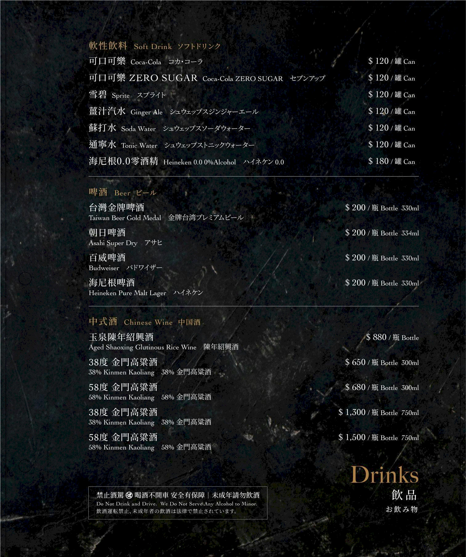 晚餐|17:30~20:30(最後點餐時間為20:00)