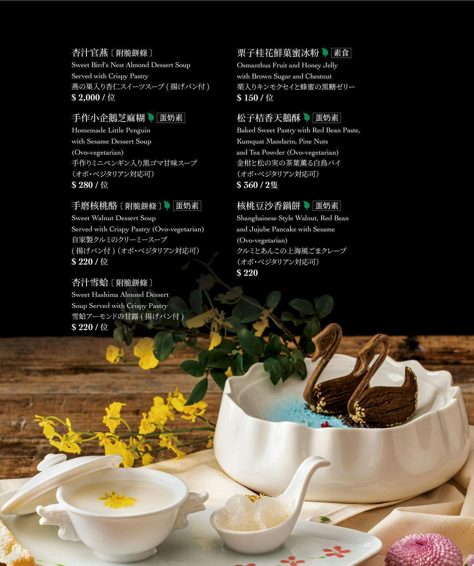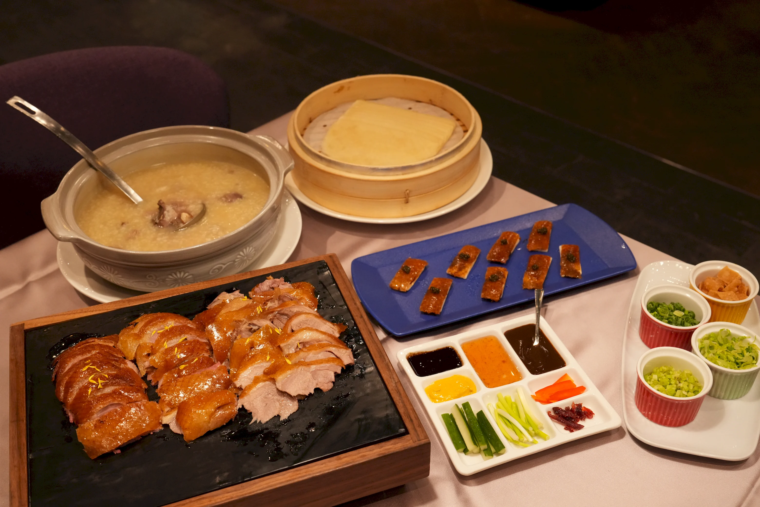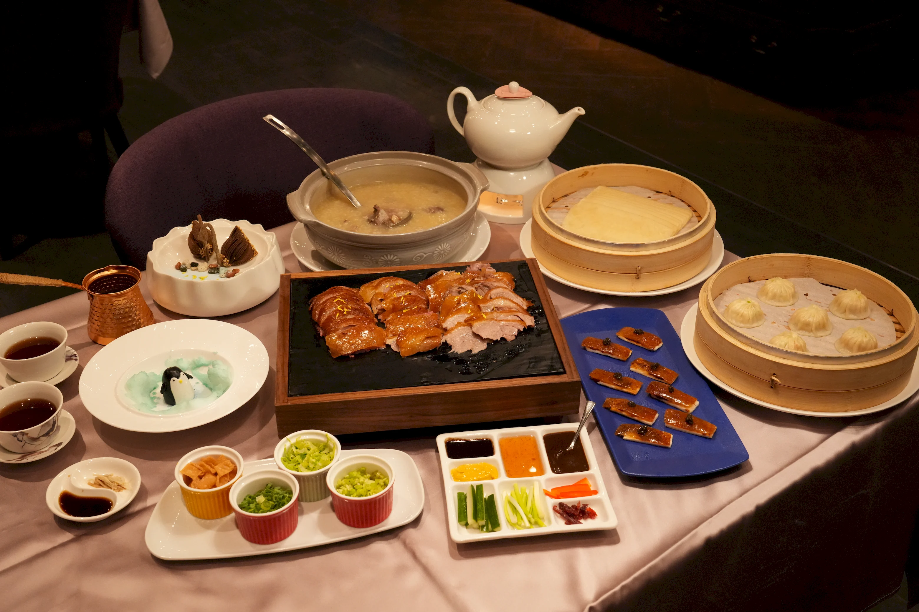 ▼這次我們點了幾道「逸薈軒」的招牌菜色,包含北平爐烤櫻桃鴨三吃、絲瓜蟹粉湯包、手作小企鵝芝麻糊、松子桔香天鵝酥,以及一壺菊花普洱茶。接下來,就來依序和大家分享每道料理的風味與口感。