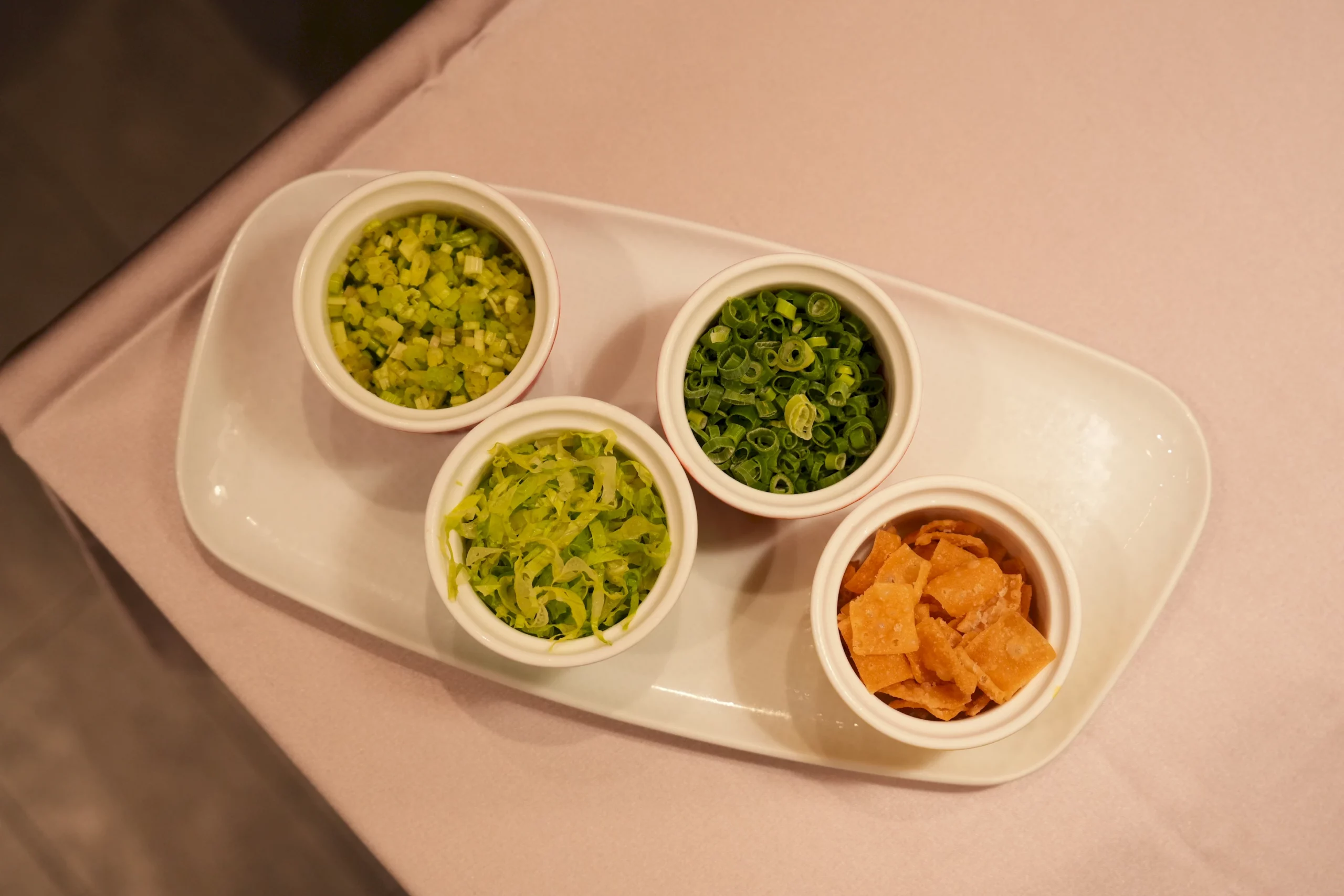 ▼第三吃我們選擇的是「秘製陳皮鴨架粥」,師傅片完鴨後,會將整個鴨架送進廚房熬成粥,實際吃起來,粥體不會過稠也不會過稀,裡頭吃得到鮮甜又軟嫩的鴨肉,是一碗相當順口的鹹粥;喜歡加配料的朋友,也可以自由加入春捲皮、蔥花、芹菜或生菜,讓整碗粥的風味更有變化。