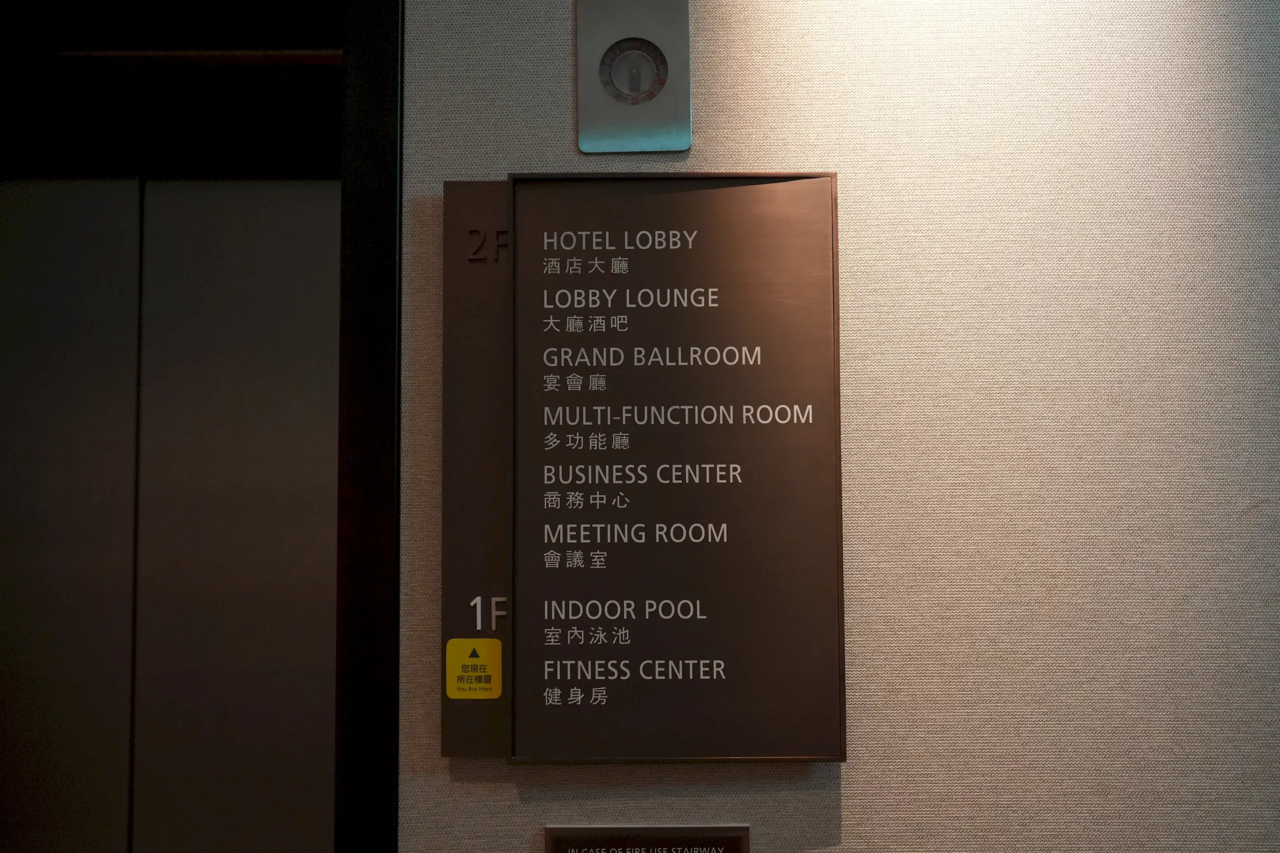 ▼接著,飯店的服務人員會協助房客運送行李,並引導你前往搭乘電梯,途中會經過館內的咖啡廳,抵達電梯後,電梯旁設有樓層簡介,這時運送行李的服務人員並不會與你同乘電梯,服務上讓人倍感貼心,且由於飯店腹地廣大,內部設有多部電梯,因此電梯的等待時間通常不會太久。