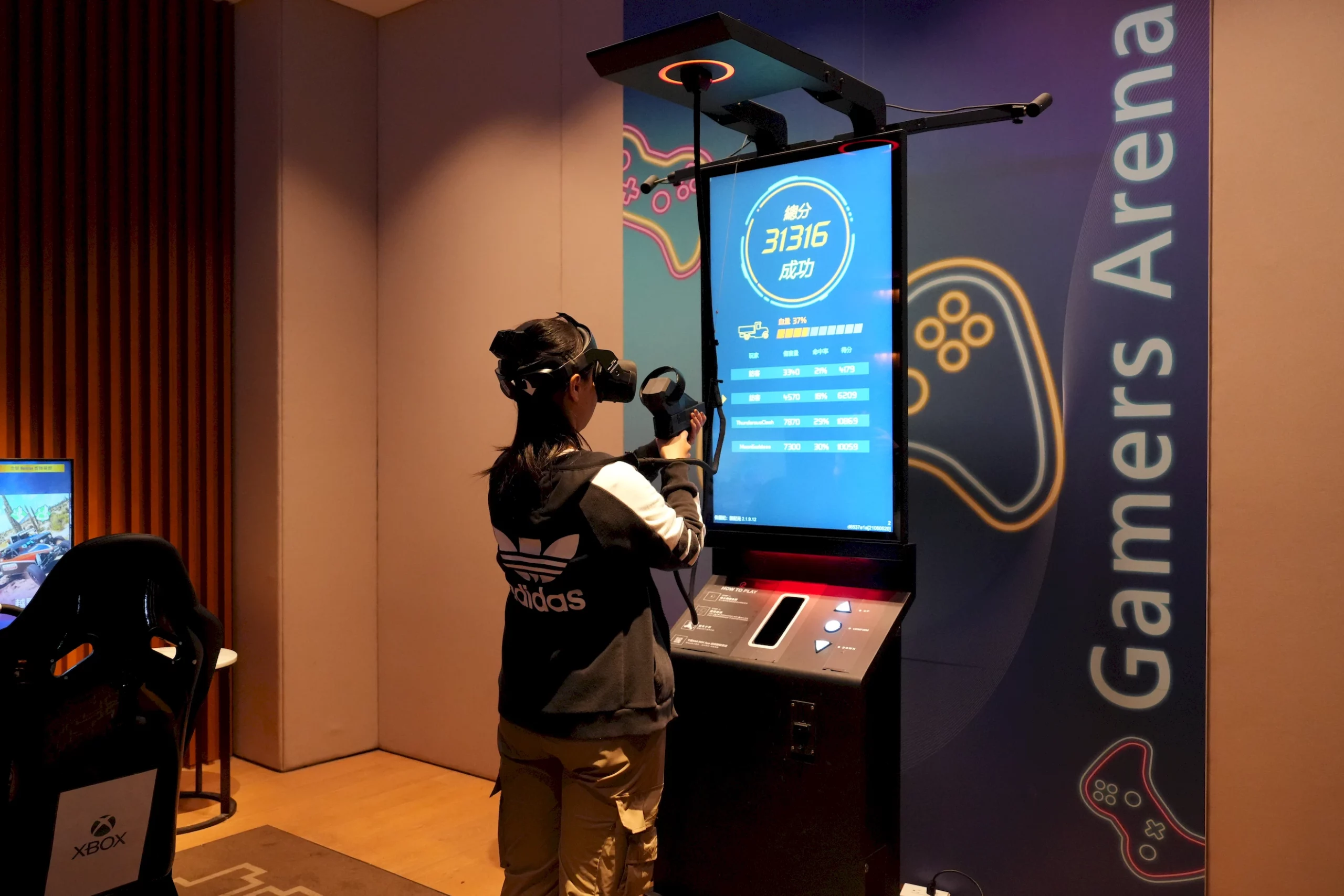 ▼接著,便會由服務人員引導你熟悉空間並協助體驗遊戲,其中VR射擊遊戲可以和朋友一起組隊,操作起來能感受到極強的沉浸感,遊戲內容也刺激有趣,不過可能是因為動畫設計的關係,玩久了會覺得稍微有點暈眩。