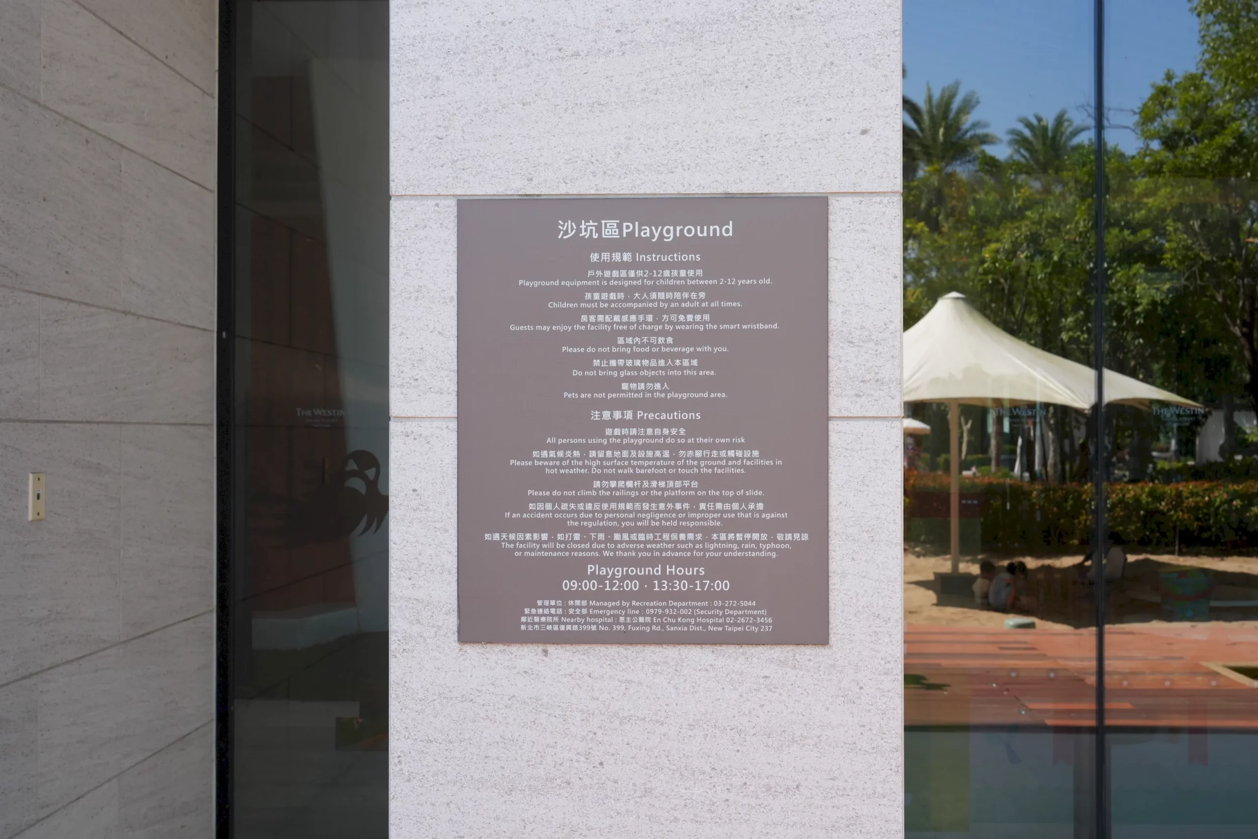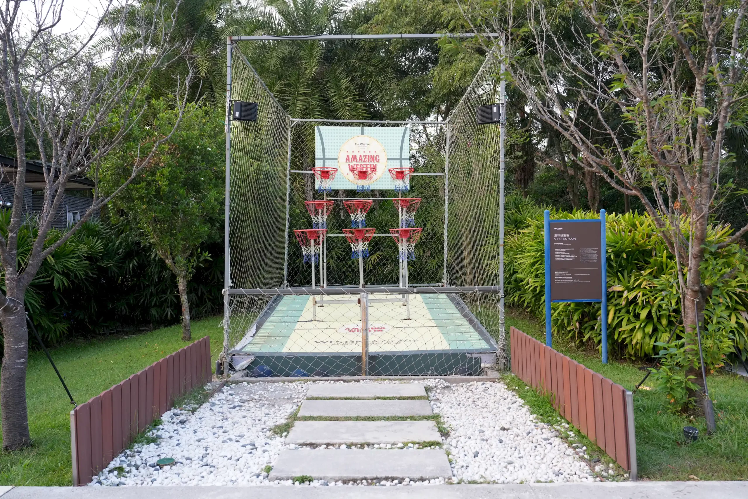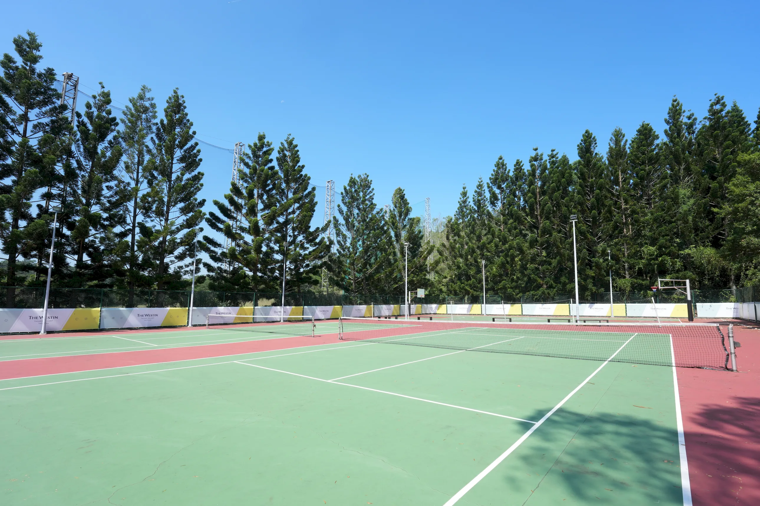 ▼「威斯汀度假酒店」的籃球場與網球場設置在同一區域,開放時段為早上9點至下午5點,房客皆可自由使用,不過場地距離飯店本館稍遠,雖然導覽地圖上標示步行3分鐘即可抵達,但實際走過去可能需要5~10分鐘左右,建議前往時可以多預留一些步行時間。