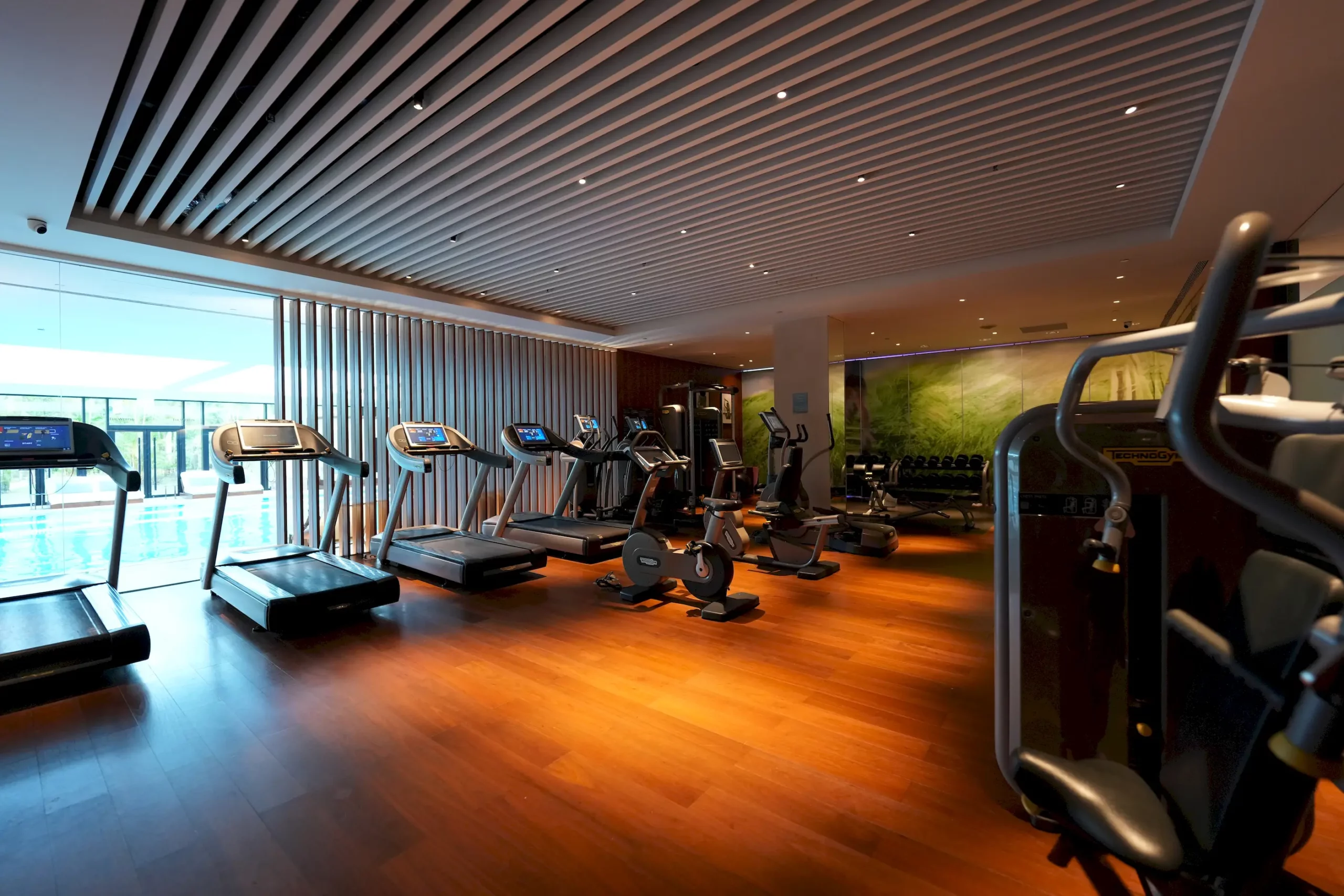 ▼「威斯汀度假酒店」的健身房為全天開放,進入健身房前需要先持手環感應,裡面的空間寬敞,跑步機、重訓器材等設備也很齊全。