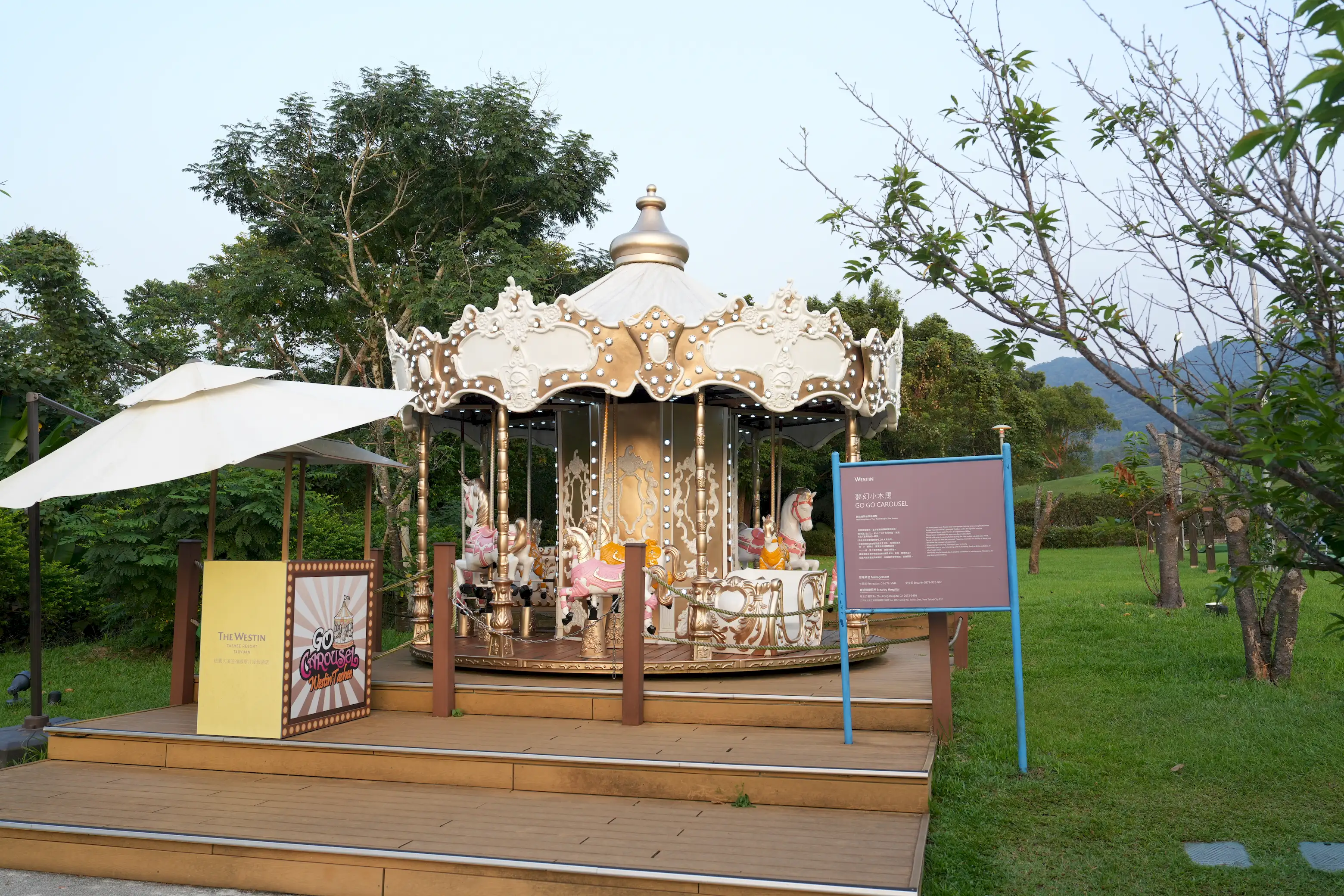 ▼沿著階梯向上,就會看到繽紛可愛的「夢幻旋轉木馬」,此項只要年滿3歲以上,體重不超過80公斤的房客都可以乘坐,不過未滿6歲的兒童需由成人陪同才能體驗。