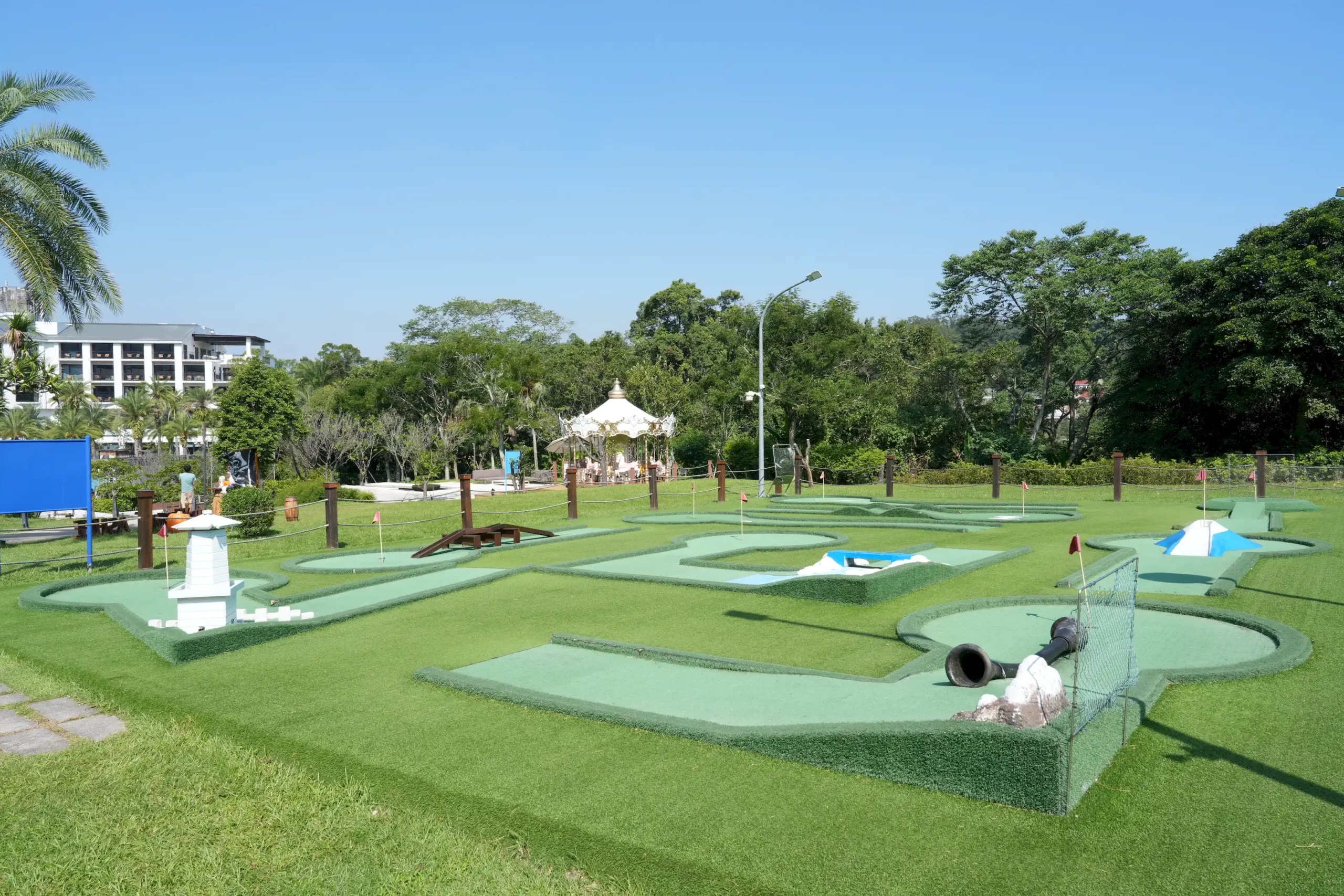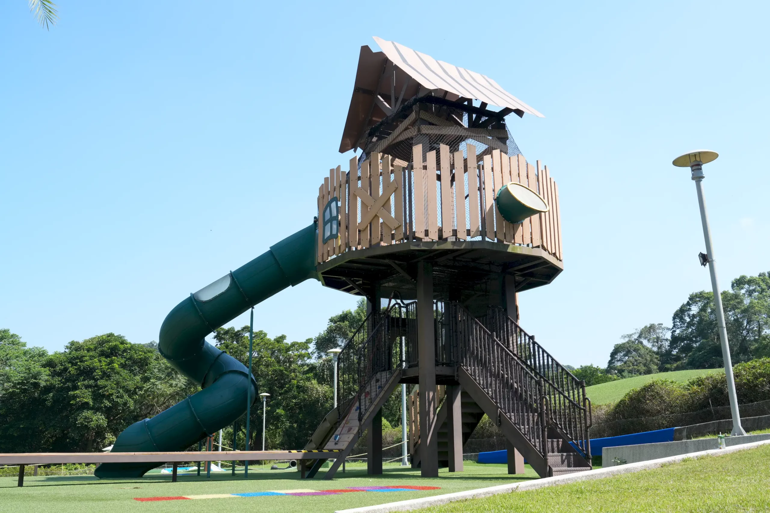 ▼再往上的區域,有適合小朋友的「迷你高爾夫」和「樹屋溜滑梯」,兩者的場地都相當寬敞,鋪設的人工草皮也很有彈性,很適合親子一同玩樂。