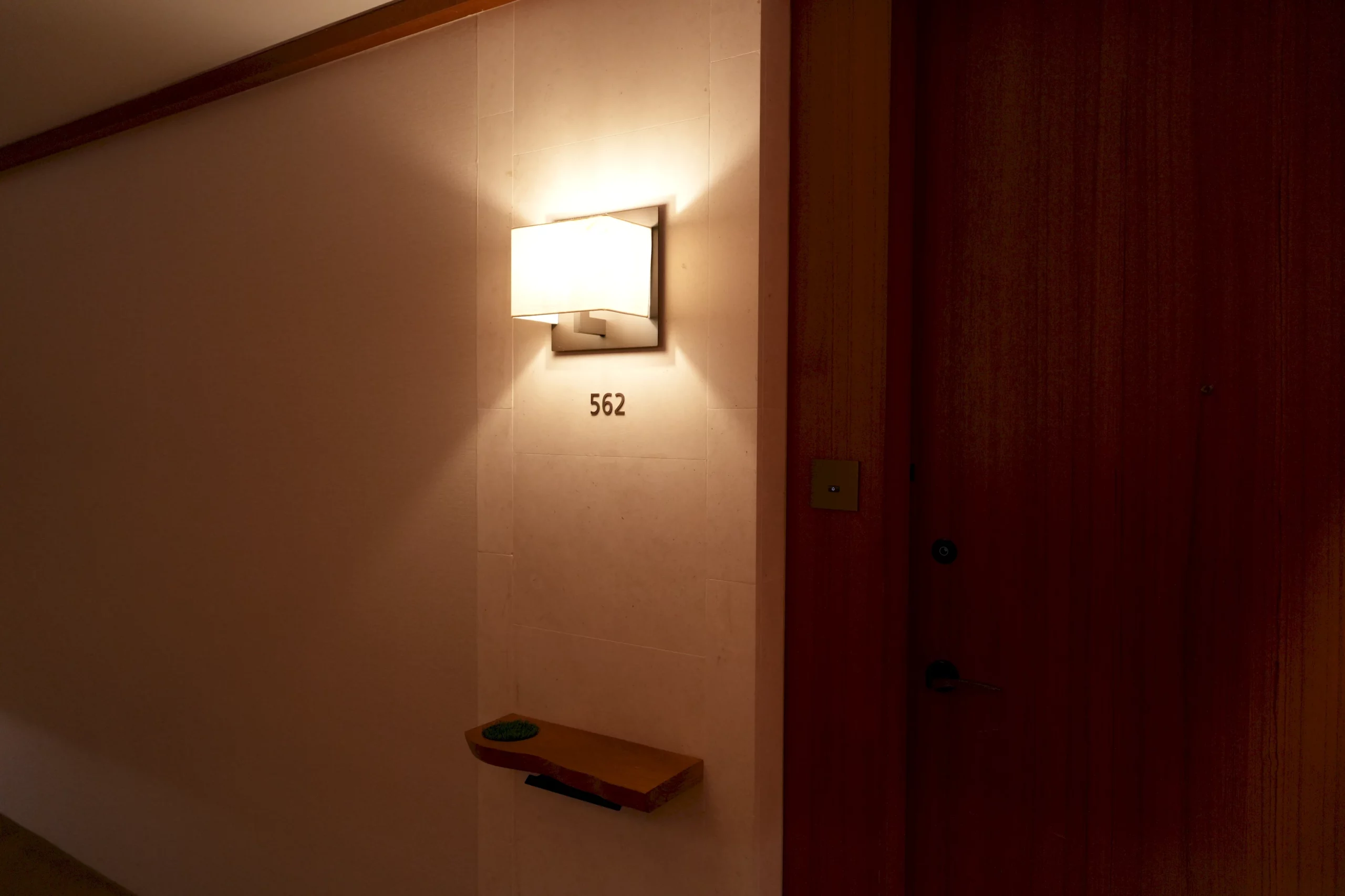 ▼客房樓層的梯間相當安靜,隔音也很好,比較特別的是,每間房門前都有一個小型置物檯,檯面雖然不大,但剛好可以讓你暫時放置手上的飲料或手機,方便空出手來以手環感應開門。