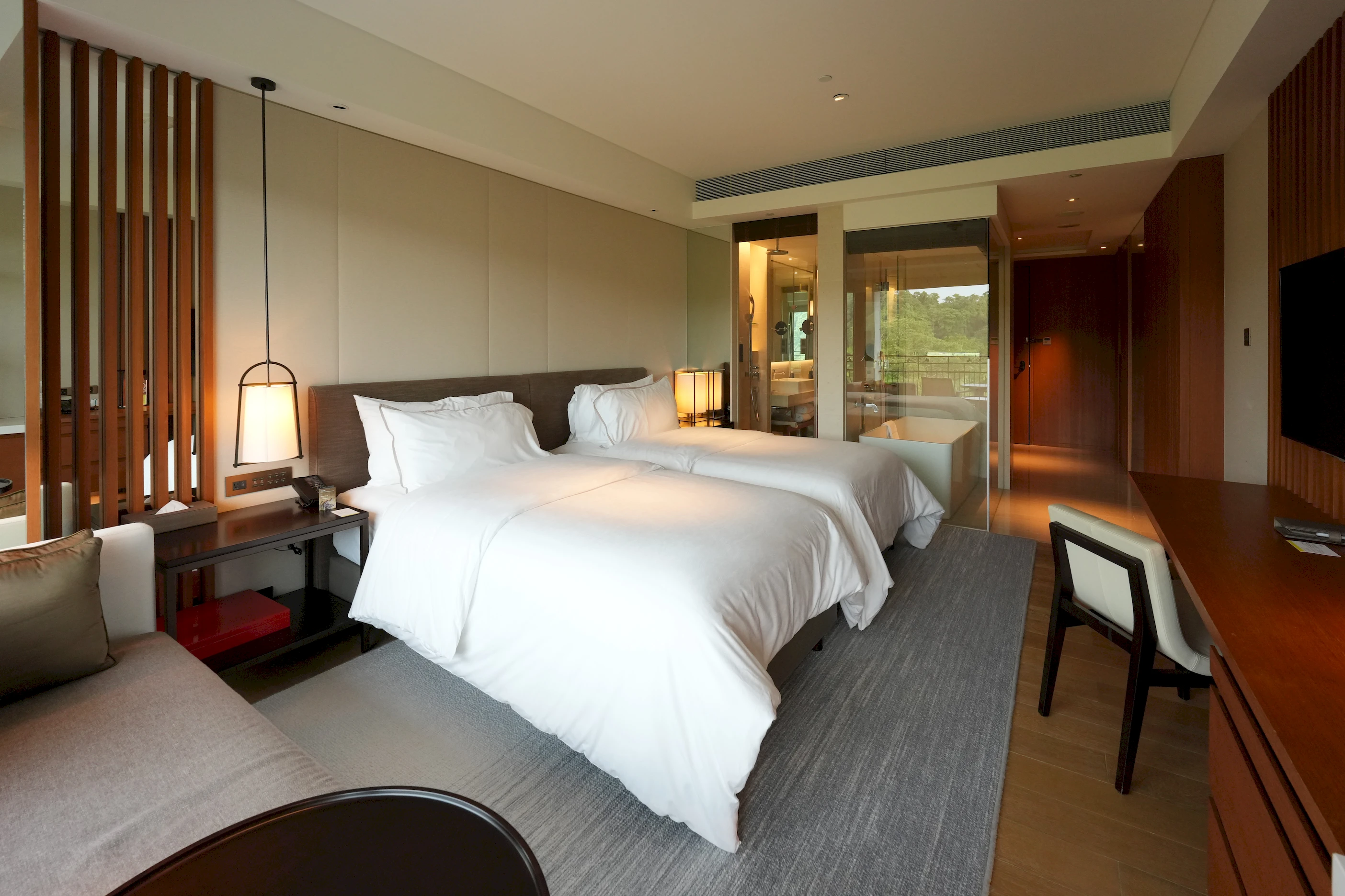 「威斯汀度假酒店」全館擁有204間舒適房型,每間房皆設有獨立觀景陽台,讓前來住宿的旅客都能盡收山嵐、戶外泳池等美景,享受無比紓壓的住宿體驗,除了舒適的房間,飯店還提供豐富多元的五星級設施,像是24小時健身房、戶外遊樂區、遊戲室等,非常適合周末帶著全家人一同前來,在山林的環繞中享受療癒的度假時光。