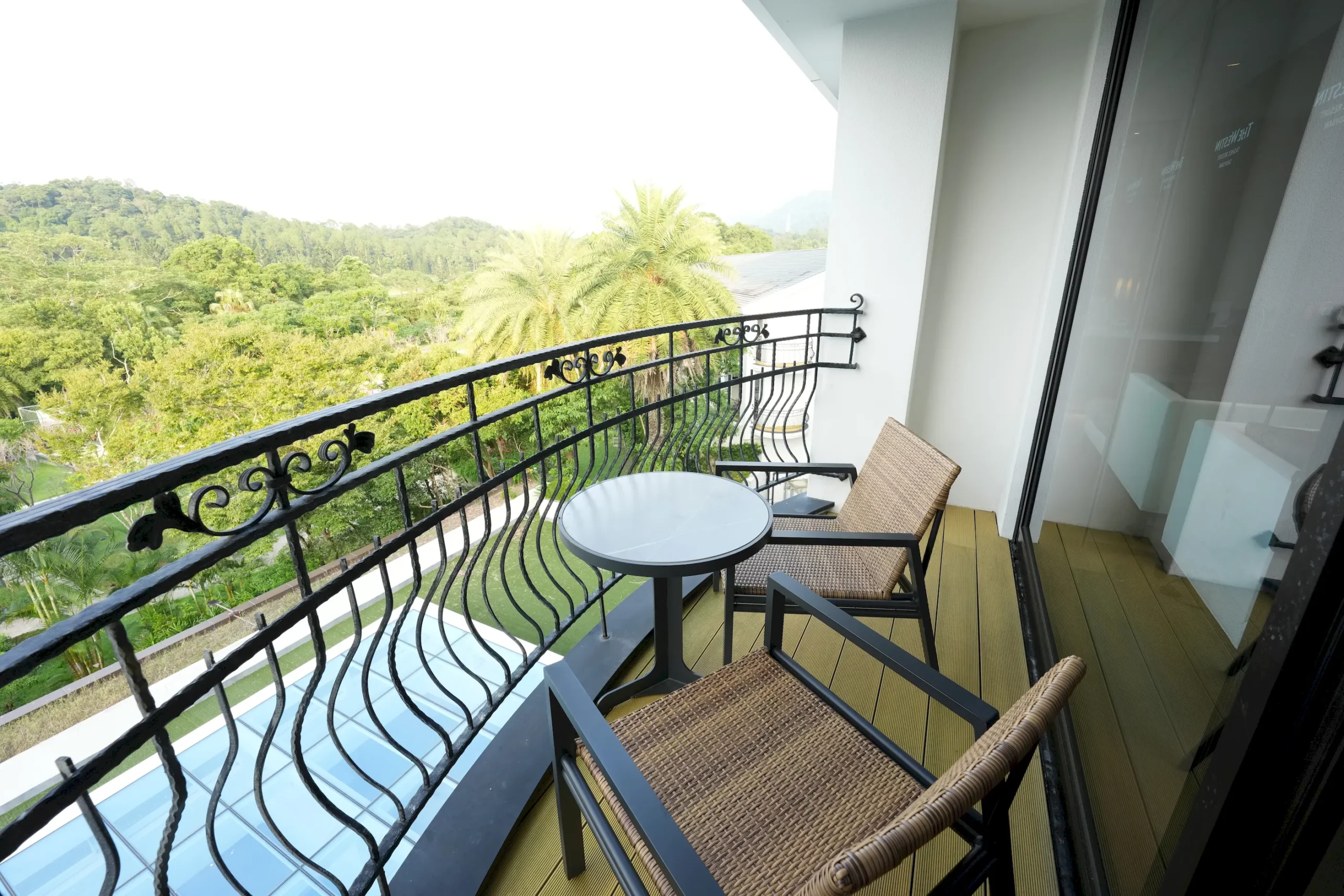 ▼推開陽台門,就能眺望整個飯店的景色,陽台空間寬敞,擺放了兩張舒適的藤椅和一張小圓桌,房客可以在此靜靜發呆、欣賞眼前的美景。